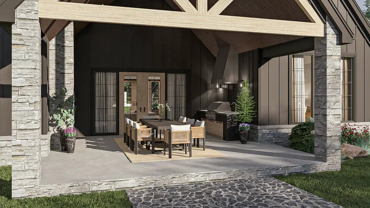 Homes of this size and character often cost approximately $200–$330 per square foot to build in the U.S., depending on region, materials, finishes, and labor. For ~3,248 sq ft of conditioned space, a rough estimate would be around $650,000 to $1,071,000 USD (excluding land, site preparation, utilities, and upgrades). Outdoor kitchen features and vaulted interiors may influence the final cost. (General industry guidance.)