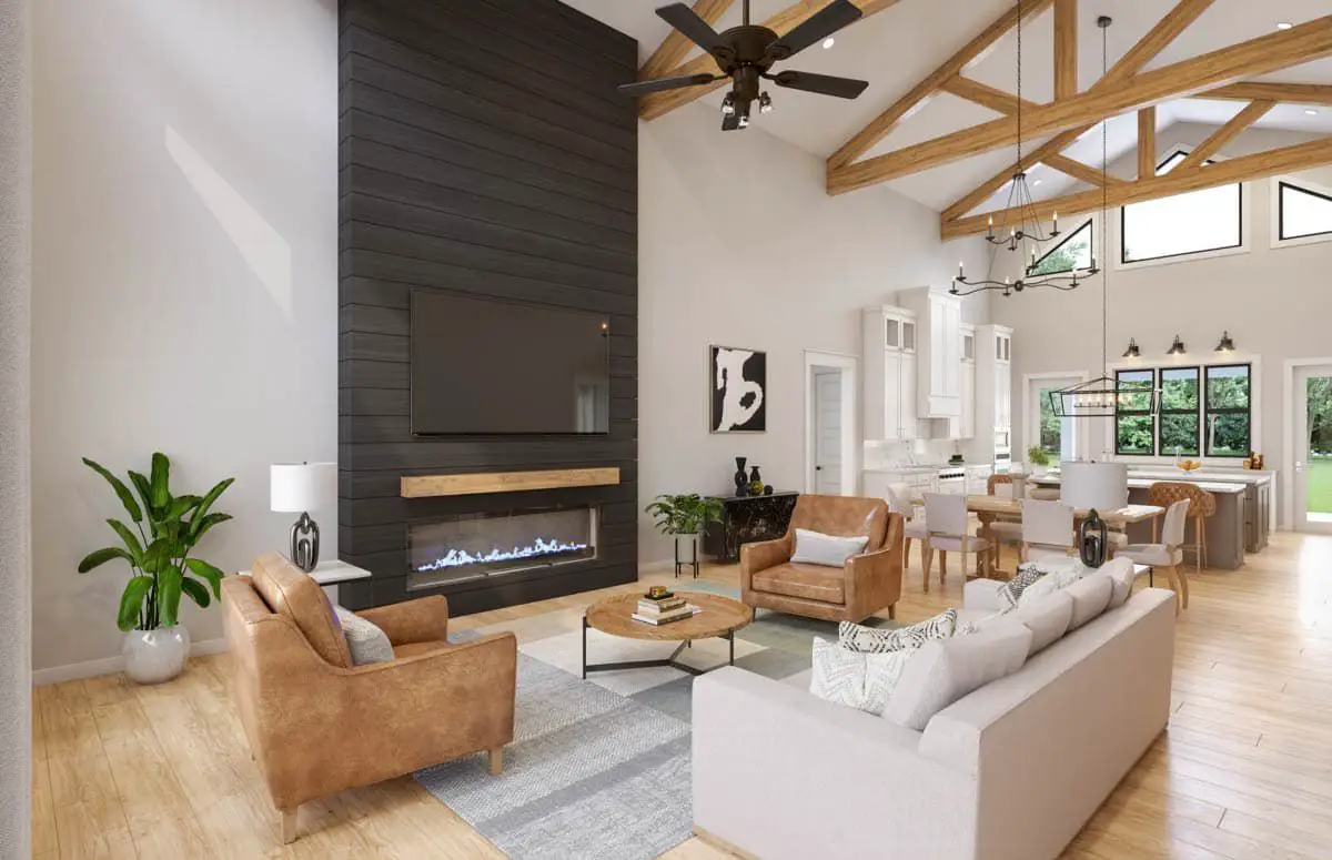 Step inside and the home immediately leans into its biggest strength: an open, airy main living area that feels dramatic in the best way. The great room is designed with a vaulted ceiling and decorative trusses—so you get that “wow” factor without needing a palace-sized footprint. It’s the kind of space that makes everyday life feel a little more special, even if dinner is just leftovers.