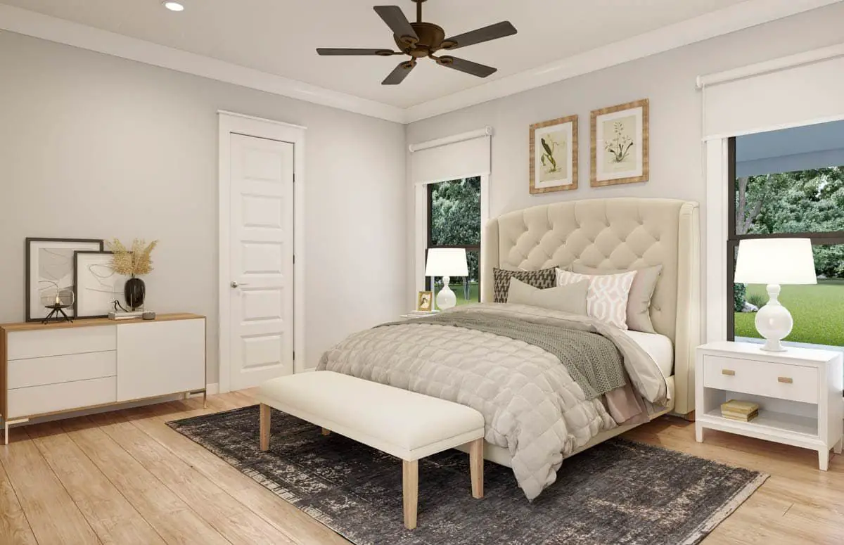 Because the bedrooms are arranged in a split-bedroom style, the primary suite stays peacefully separate—ideal when different schedules are happening under the same roof.