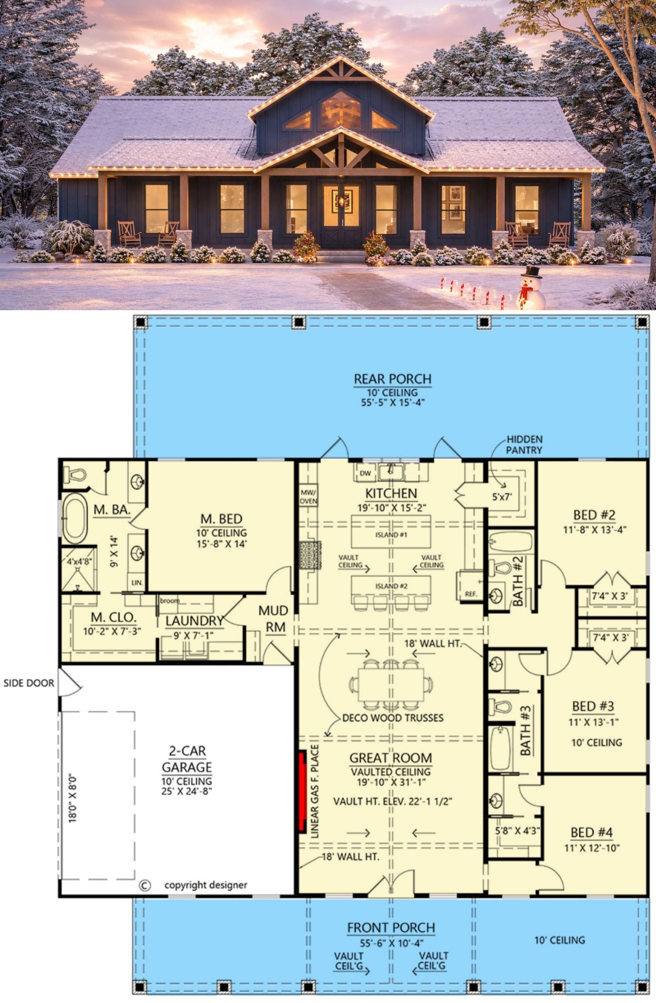 This design nails the balance between “looks amazing” and “functions beautifully.” The vaulted great room adds character and volume, the kitchen is made for real hosting, and the storage solutions keep your day-to-day life from spilling into every corner. Add the massive porch space and you’ve got a home that feels bigger than its square footage—because it uses every inch wisely.