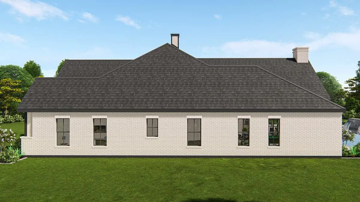 Anchored by a three-car garage with side entry, this plan maintains a balanced and inviting aesthetic while providing plenty of practical vehicle and storage space.
