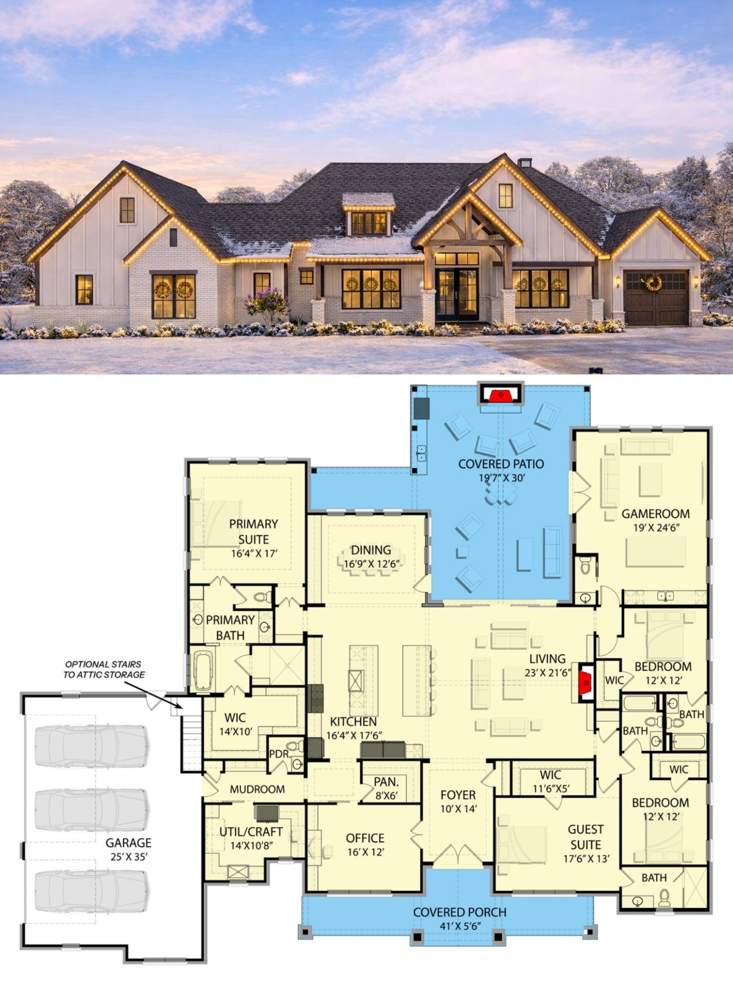 This Craftsman-inspired home plan balances open, sociable spaces with quiet retreats. The central open layout ensures family and guests stay connected from the great room to the kitchen and dining areas, while the home office and game room bring added versatility for work and leisure. Generous outdoor living spaces expand everyday living into the fresh air—perfect for relaxing, entertaining, or family gatherings throughout the seasons. 11