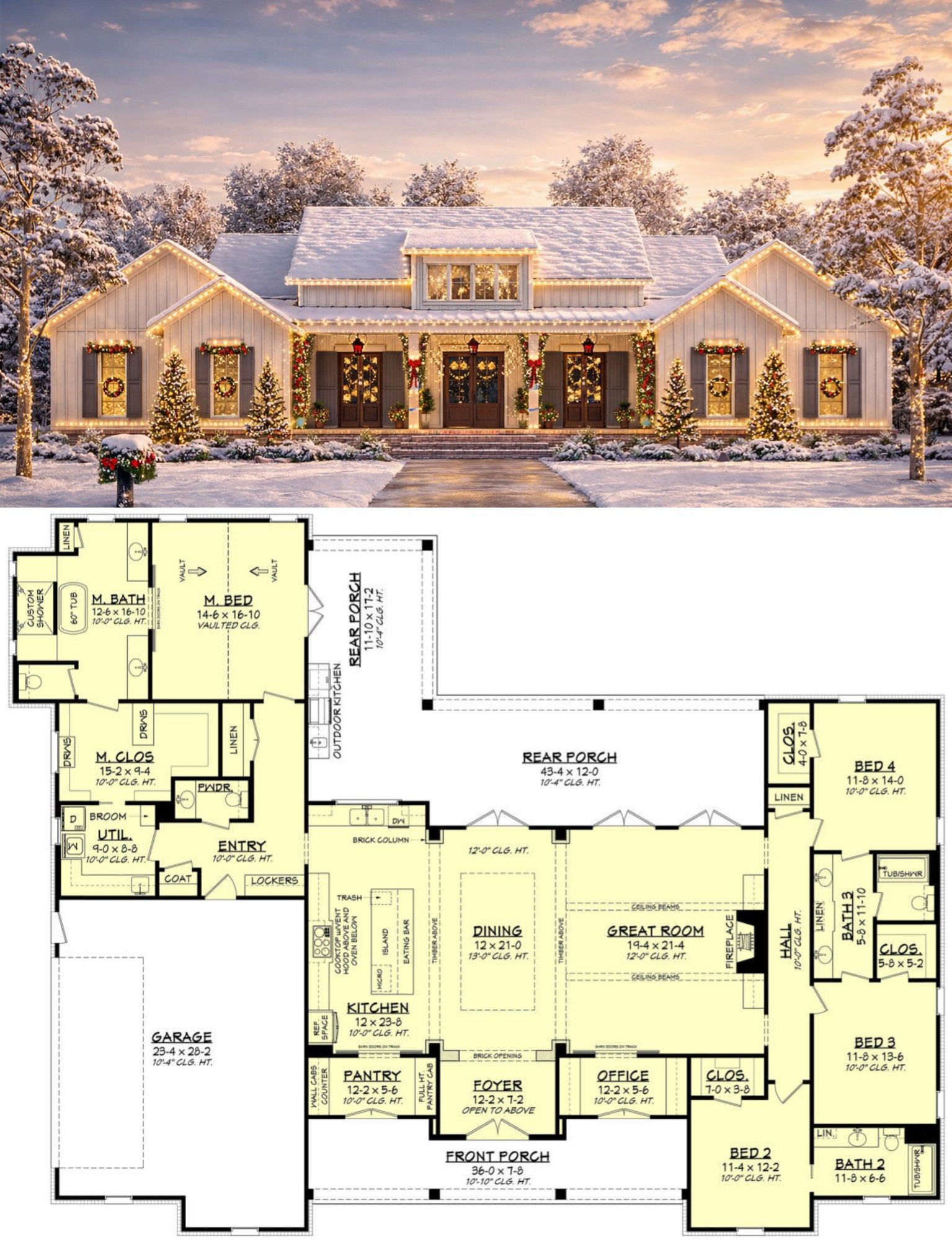 This farmhouse plan supports a connected yet flexible lifestyle. The large open main spaces encourage interaction among family and guests, while the split bedroom layout and dedicated office offer quieter zones for rest, work, or study. The rear porch enhances indoor-outdoor living and gives you space to enjoy fresh air throughout the seasons. 11
