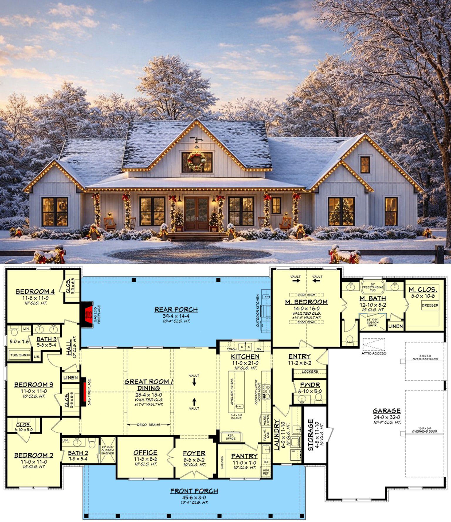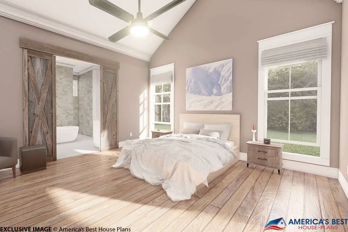 This is the kind of farmhouse layout that supports how people actually live. The vaulted main living space creates a bright, welcoming hub. The office gives you a dedicated spot to focus. The split bedrooms protect privacy. And the outdoor living setup is big and functional—so you’ll actually use it, not just admire it from inside.