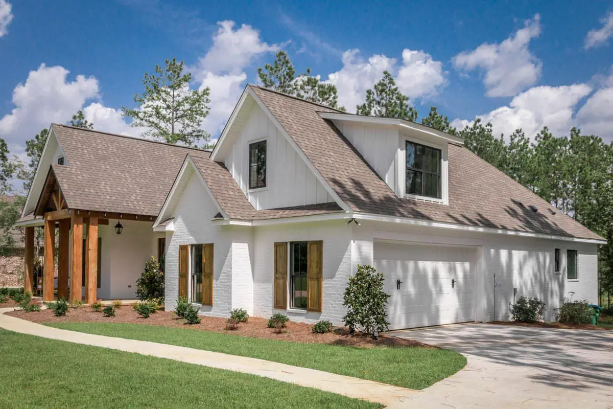 The attached 2-car garage provides convenient parking and storage, integrating seamlessly with the home’s overall design without overpowering the front elevation.