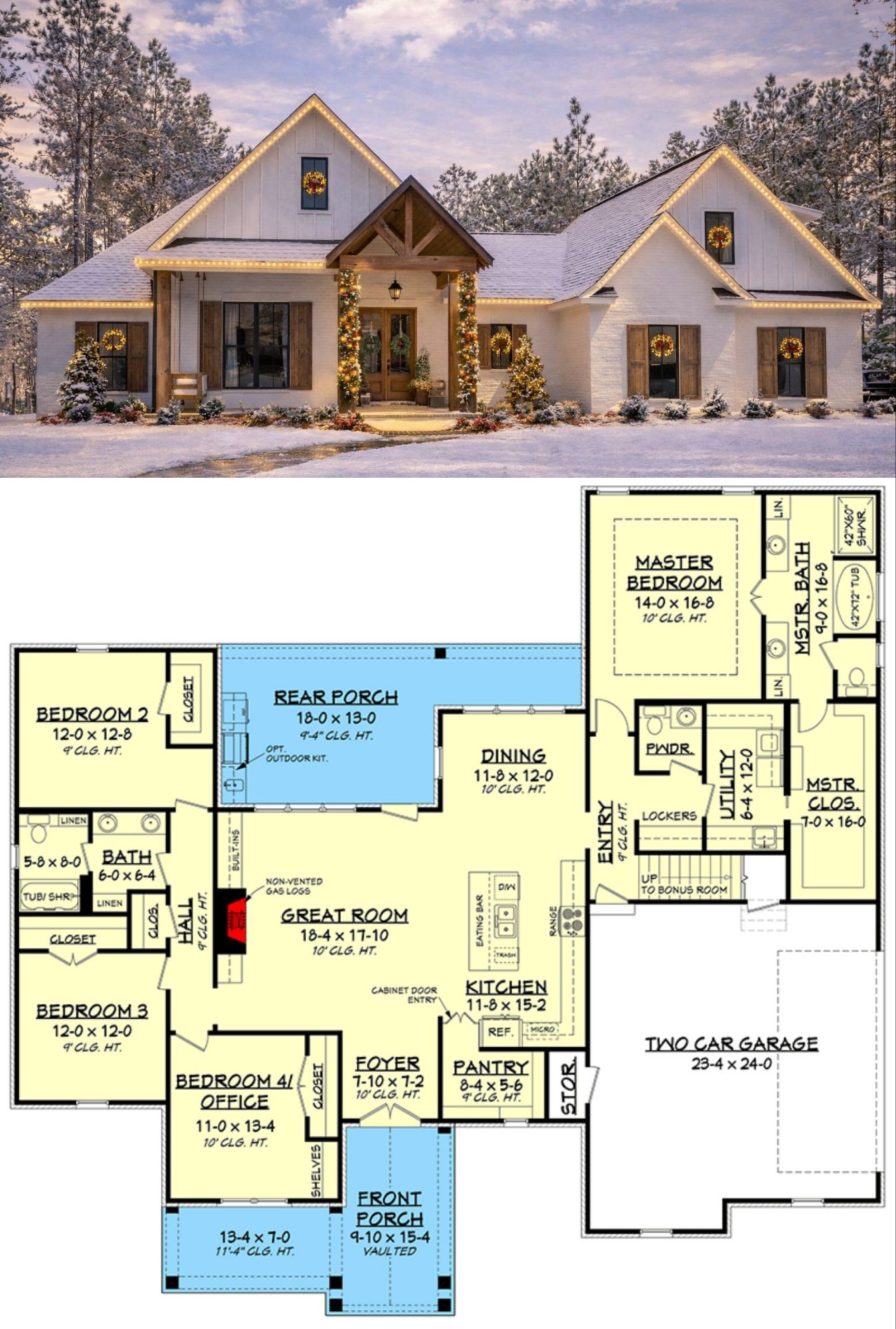 With approximately 2,373 square feet of heated living space, this design includes 4 bedrooms, 2.5 bathrooms, and a comfortable 2-car garage, making it ideal for families who want a practical yet stylish home that supports everyday living and entertaining.