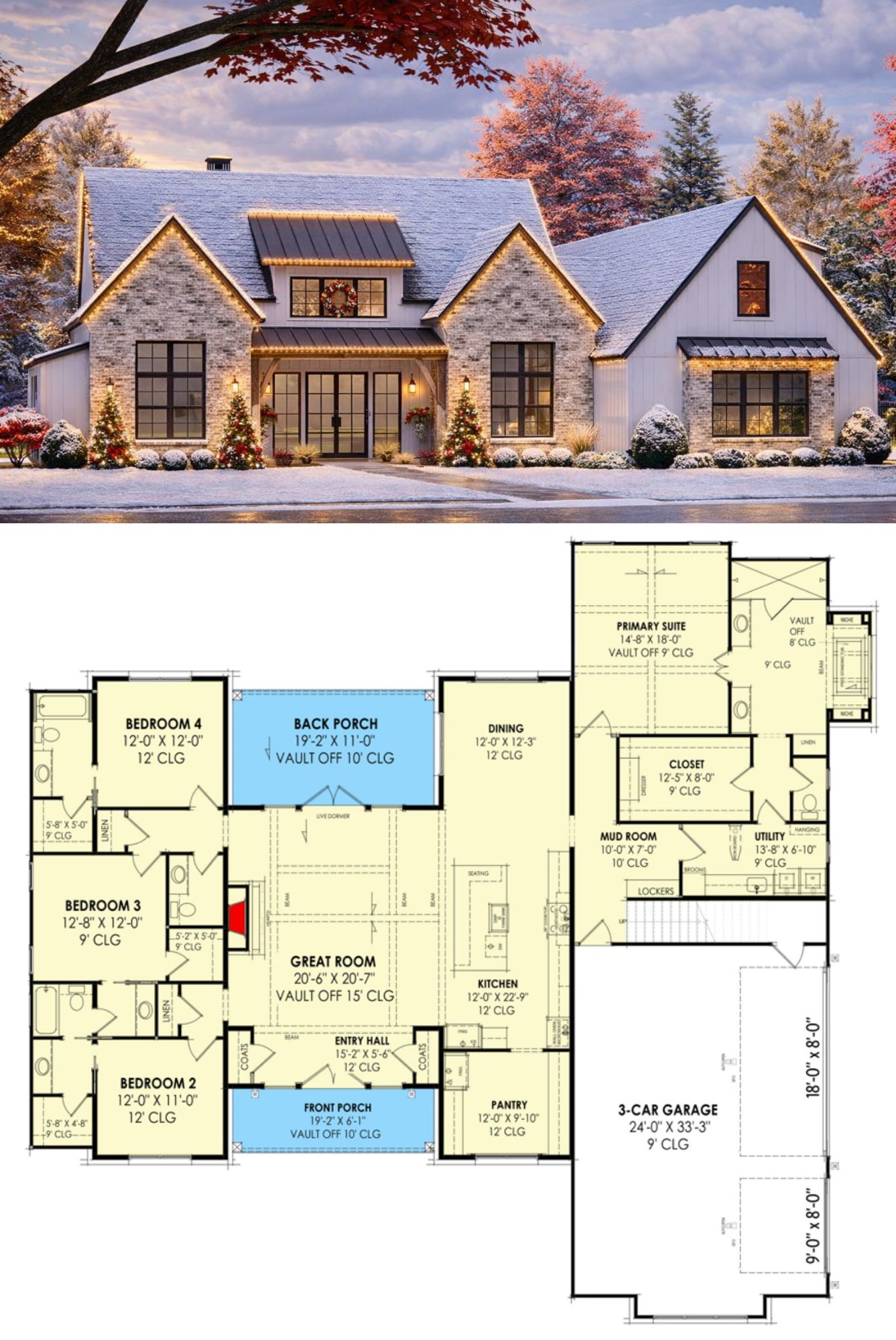 This modern farmhouse plan offers a versatile and open layout ideal for everyday family living and entertaining while fitting under 3,000 square feet of heated space.