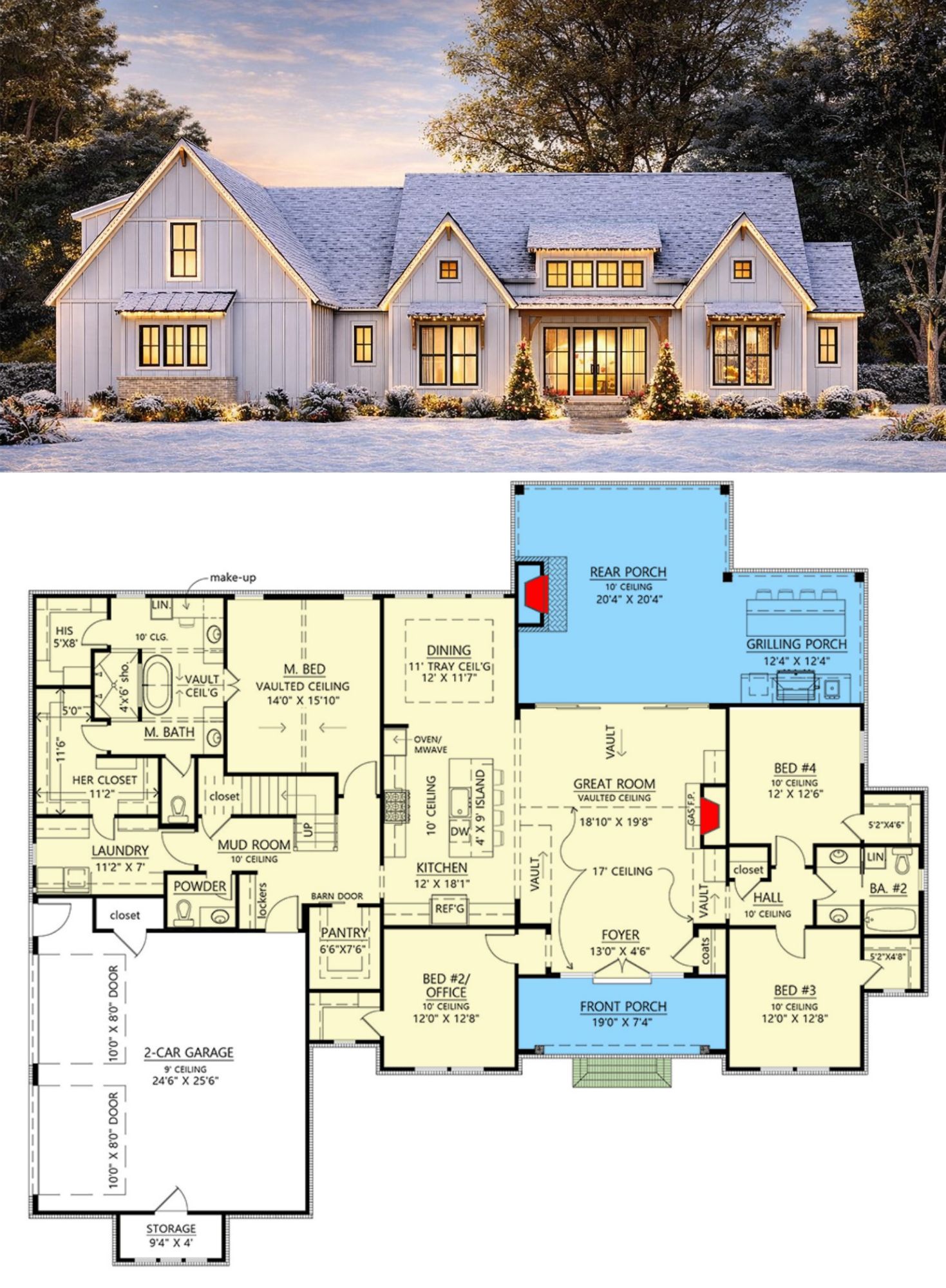 This modern farmhouse design offers a smartly planned 1-story layout with flexible living spaces, ideal for families who want comfort, connection, and room to grow.