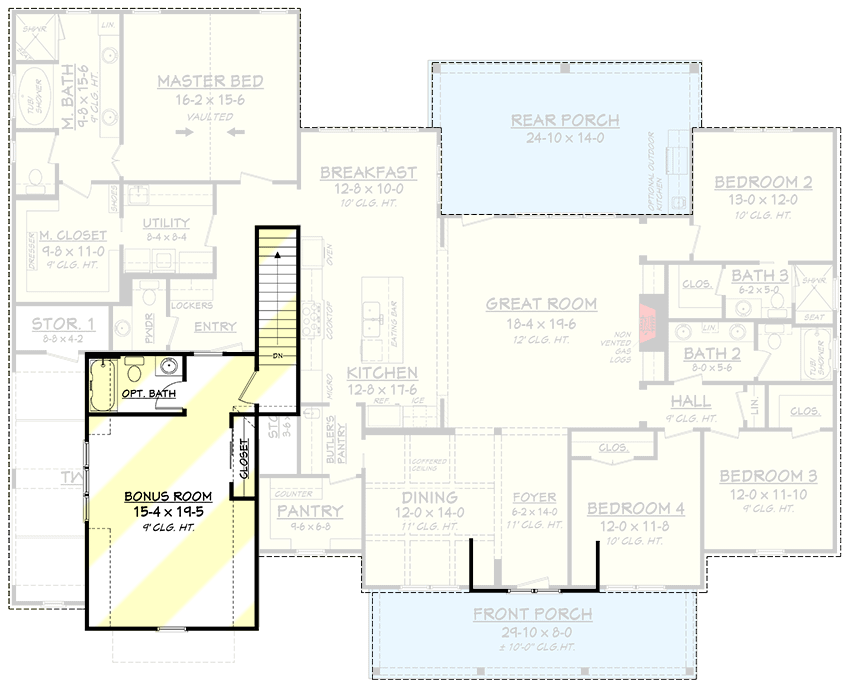 One of the standout features of this plan is the bonus room above the garage, complete with its own full bathroom. This space can serve as a fifth bedroom, playroom, home office, hobby room, or guest suite—adding flexibility without expanding the home’s main footprint. 7