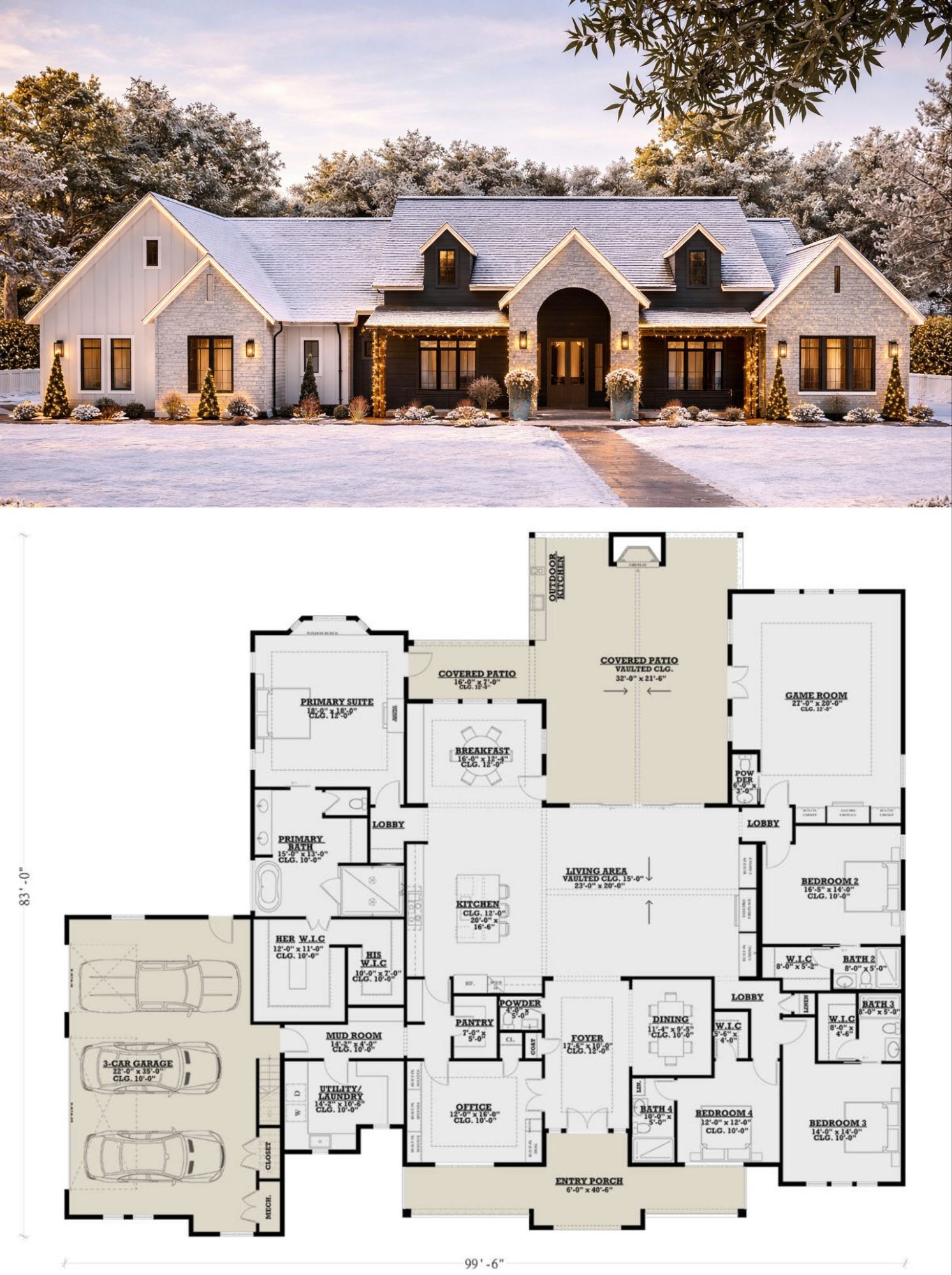 Featuring about 4,187 square feet of heated area, this one-story design includes 4 bedrooms, 4 full bathrooms, 2 half baths, and a 3-car garage, making it ideal for both everyday living and entertaining. 0