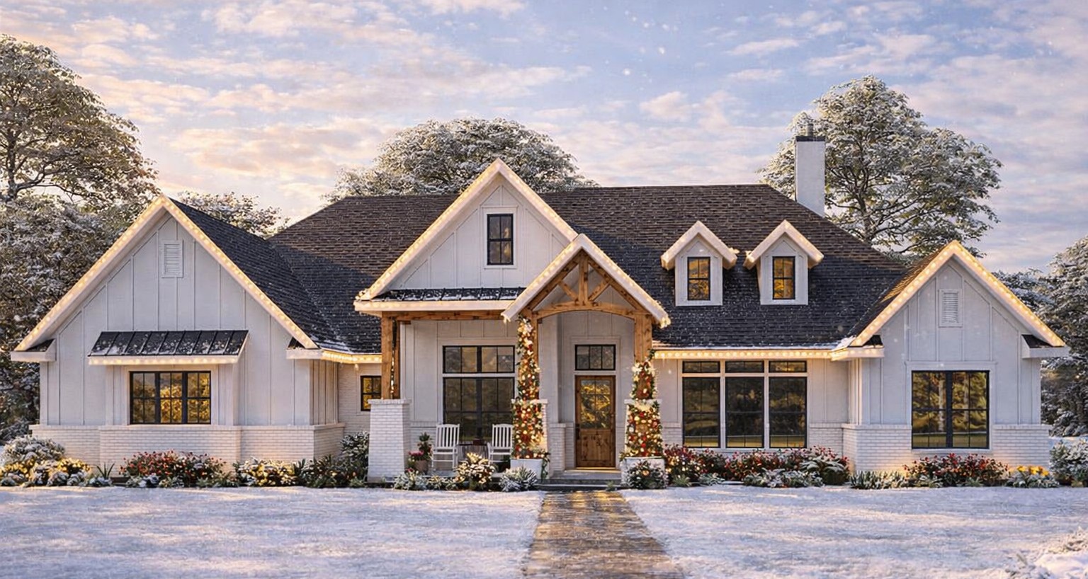 With approximately 3,220 square feet of conditioned space, this design offers between 4 and 5 bedrooms, 3 full bathrooms, and thoughtful living areas that accommodate family living, guests, and future needs.