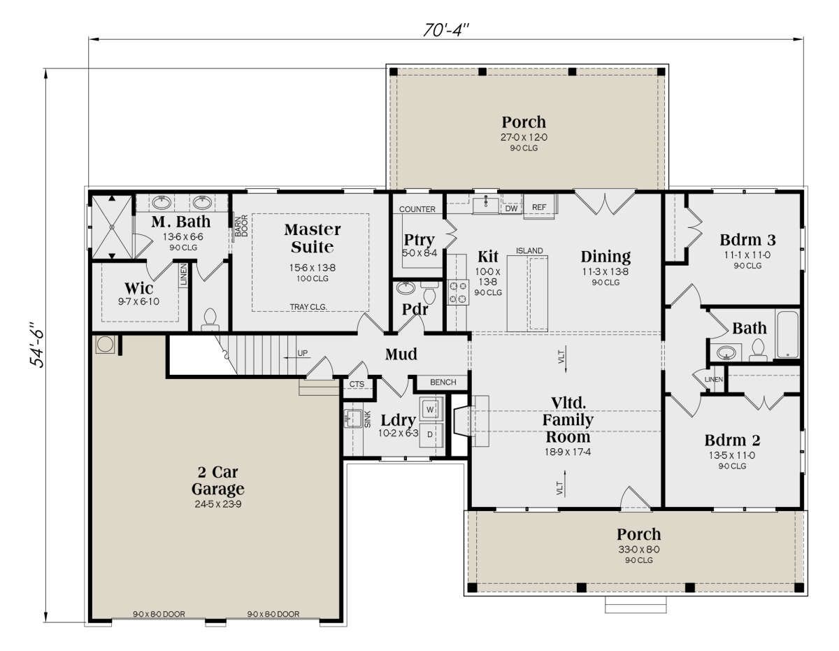 This plan offers flexible bedroom design that can function as three primary bedrooms with an optional fourth room for a home office, guest suite, or multi-purpose space, depending on your needs.