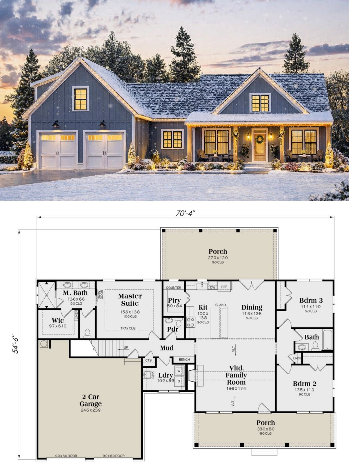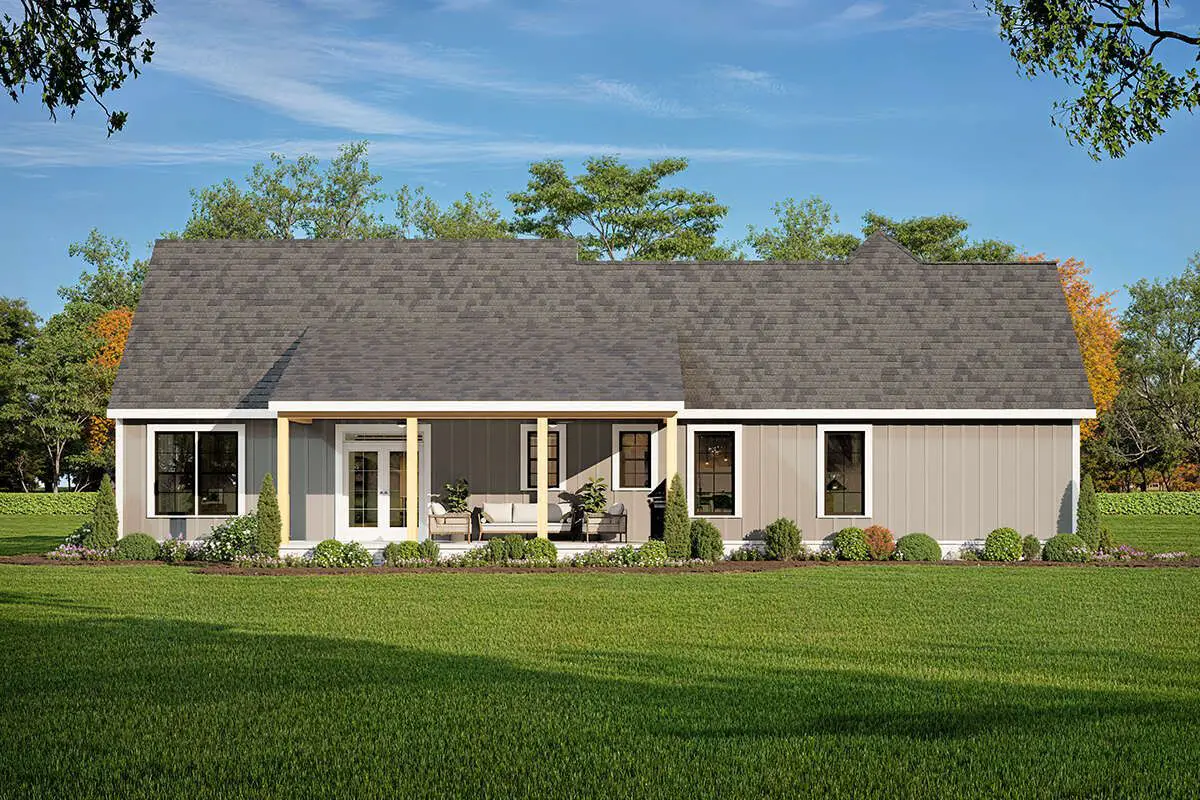 This inviting modern farmhouse design blends charming architectural details with efficient, functional living space—ideal for families or anyone who enjoys open layouts and smart design.
