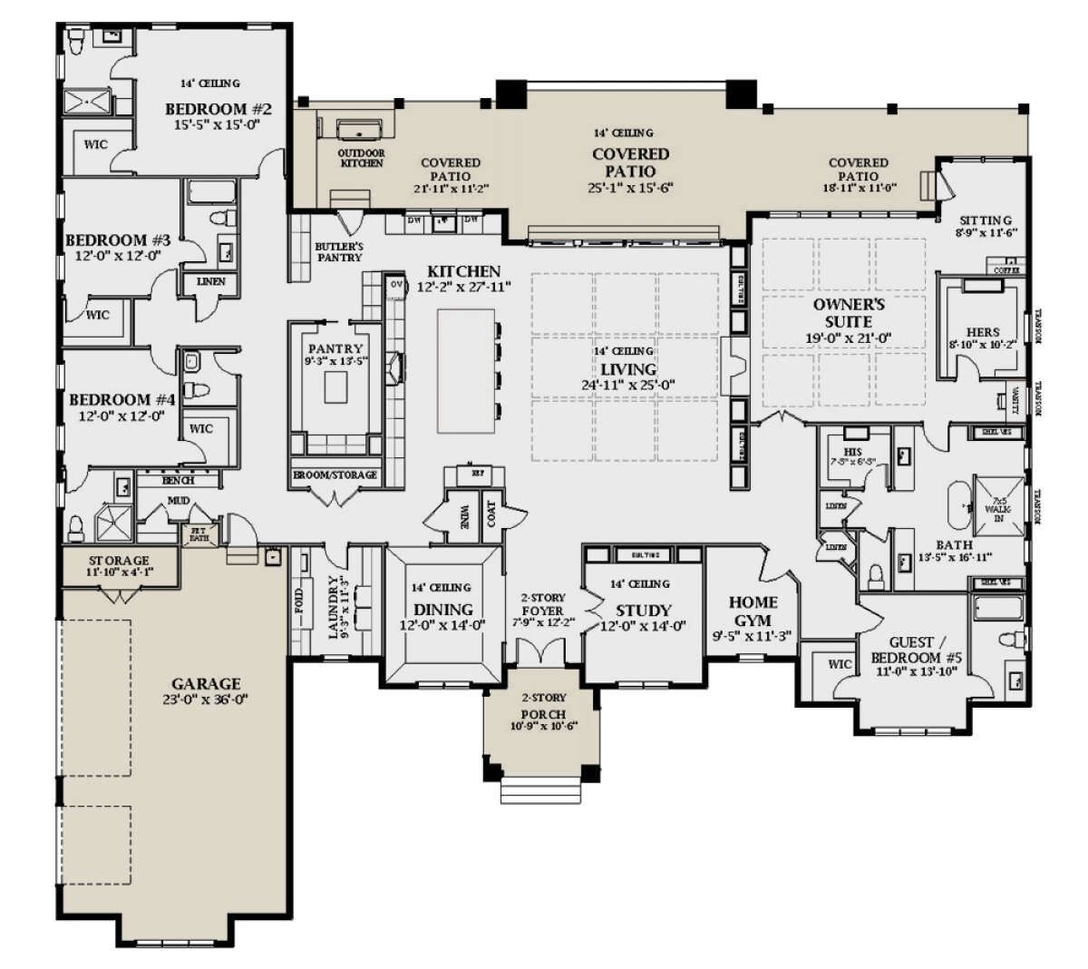 This contemporary plan is designed to accommodate a wide range of lifestyle needs. The open layout encourages family gatherings and entertaining, while the multiple private spaces—like the study, sitting room, and exercise room—offer retreats for focus and relaxation. Elongated garage and functional utility spaces enhance convenience for daily routines. 17