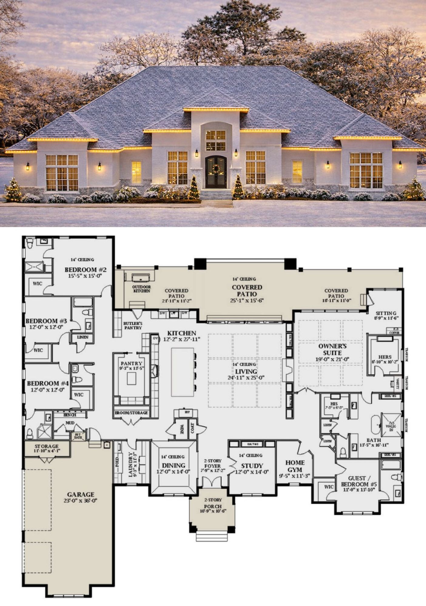 The plan includes useful everyday spaces like a mudroom, laundry room, sitting area, study, and even an exercise room—providing flexibility for work, play, or relaxation. 3