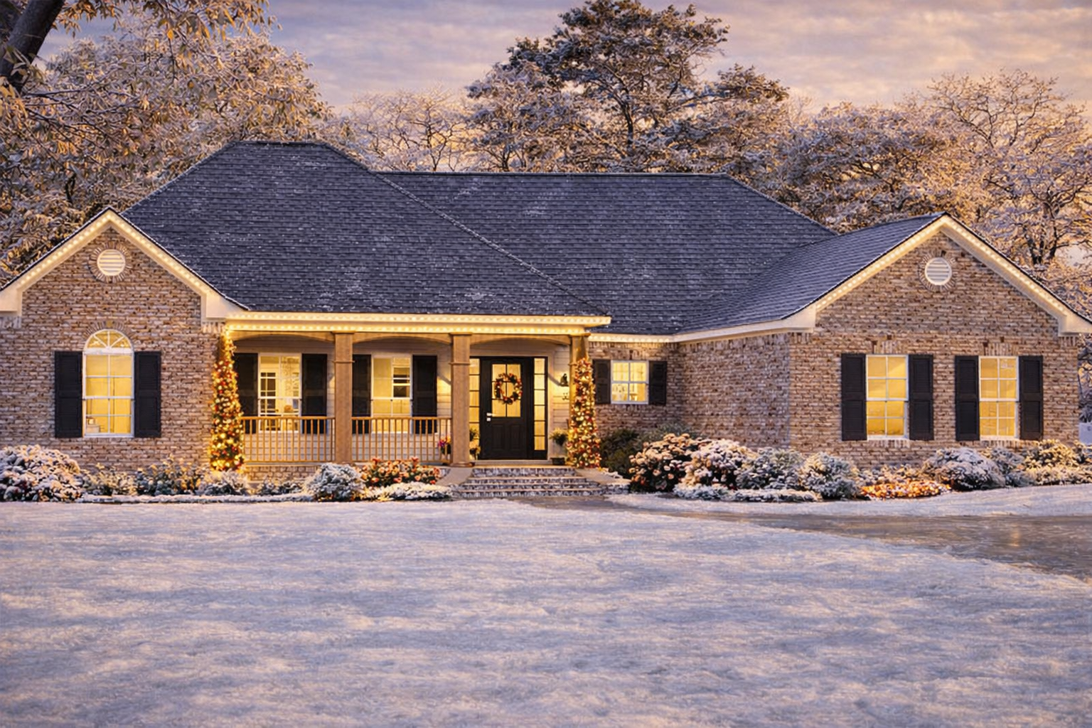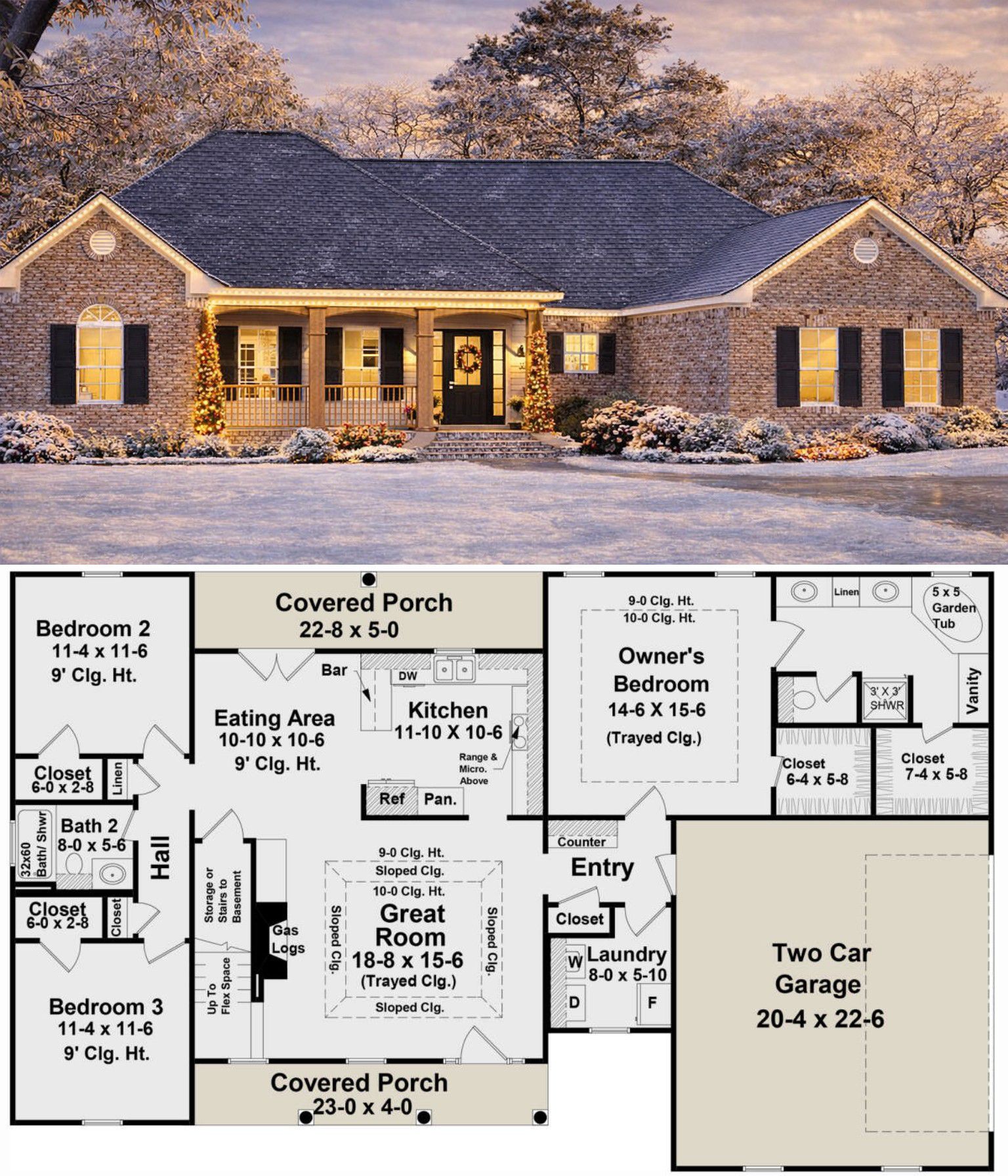 This design offers timeless country style with a welcoming façade, modest rooflines, and a friendly covered front porch that enhances curb appeal and encourages outdoor relaxation. The overall footprint is roughly 64′ wide by 39′ deep, making it well suited for many residential lots. 1