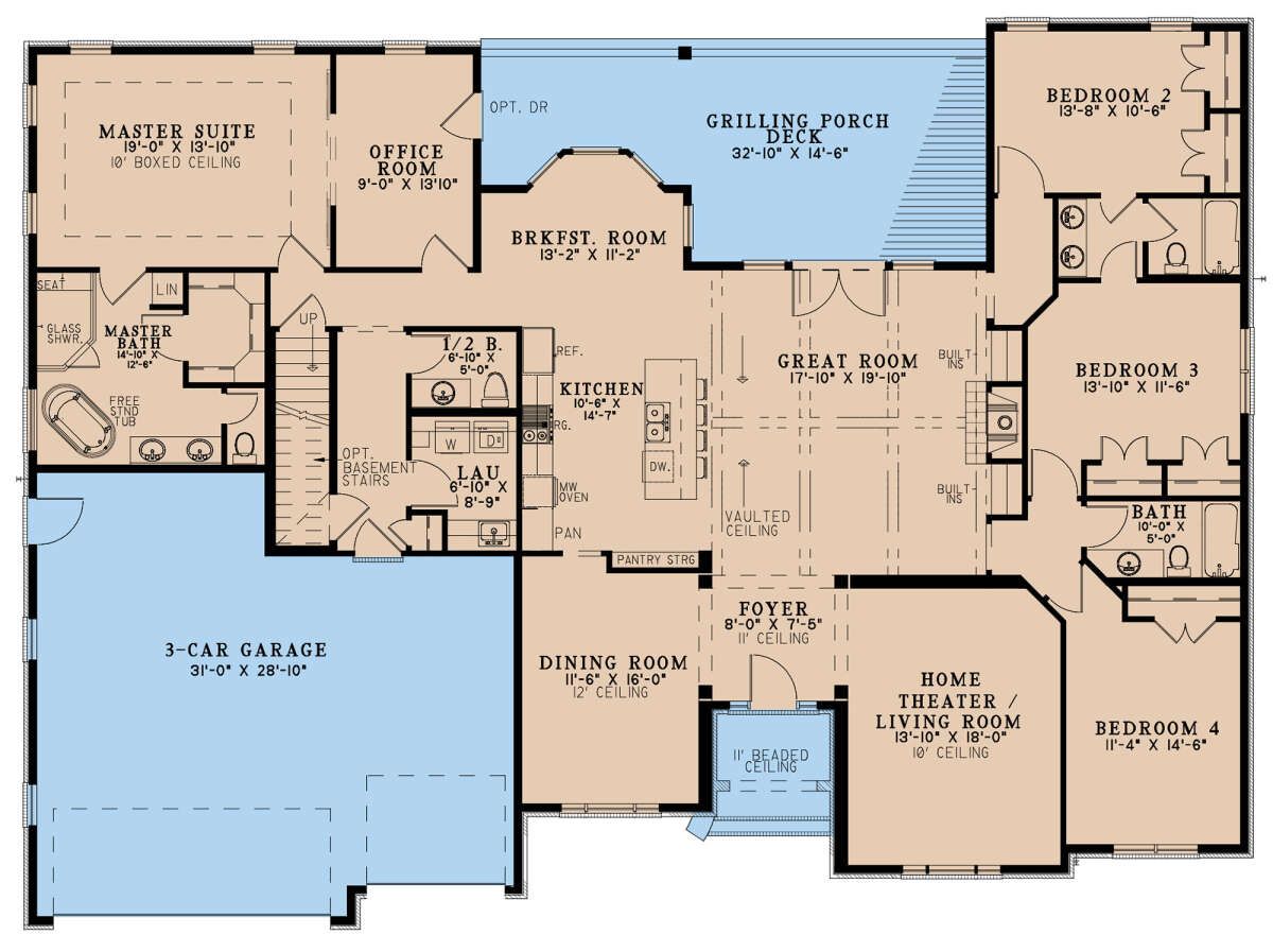 With **3 full bathrooms** and **1 half bathroom**, the plan ensures comfort and convenience throughout daily routines and guest visits. 8