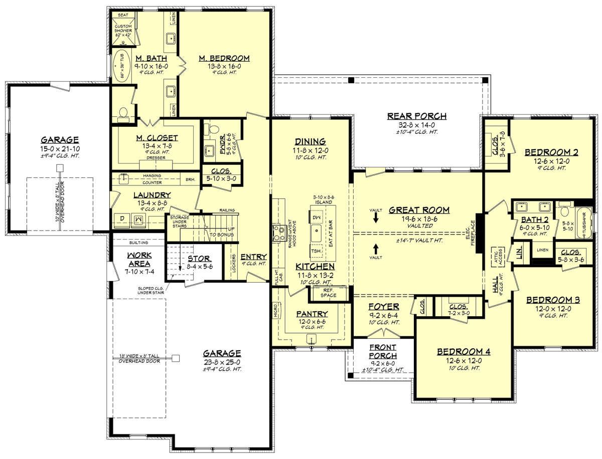 This modern farmhouse plan is tailored for comfortable family living with open shared spaces, private bedroom zones, and flexible bonus areas that adapt to your lifestyle. The generous garage and outdoor living areas extend usable space, making this plan perfect for both everyday life and hosting gatherings. 19