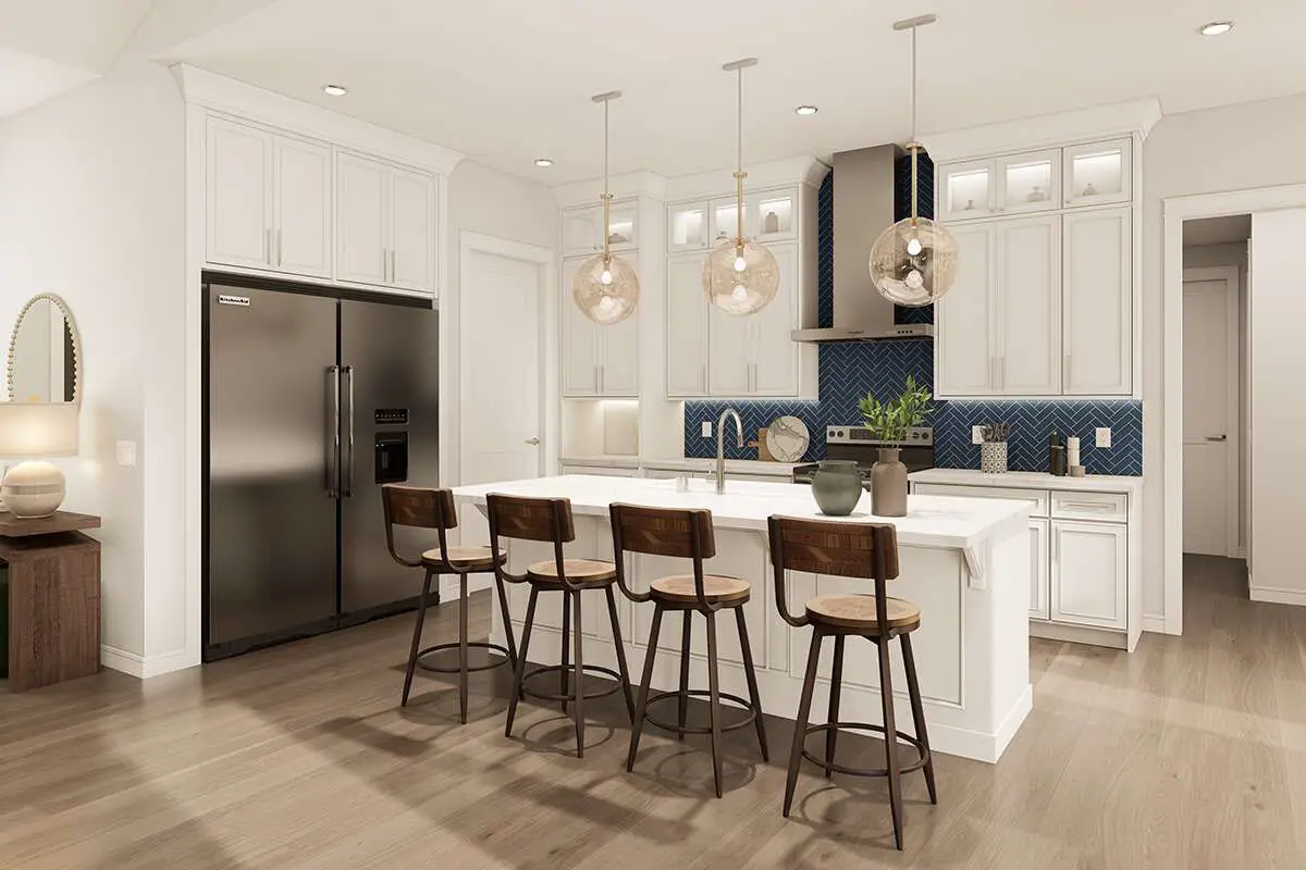 The kitchen is designed with both functionality and social living in mind, typically featuring a central island and ample storage, making meal prep and informal meals easy and enjoyable. 3