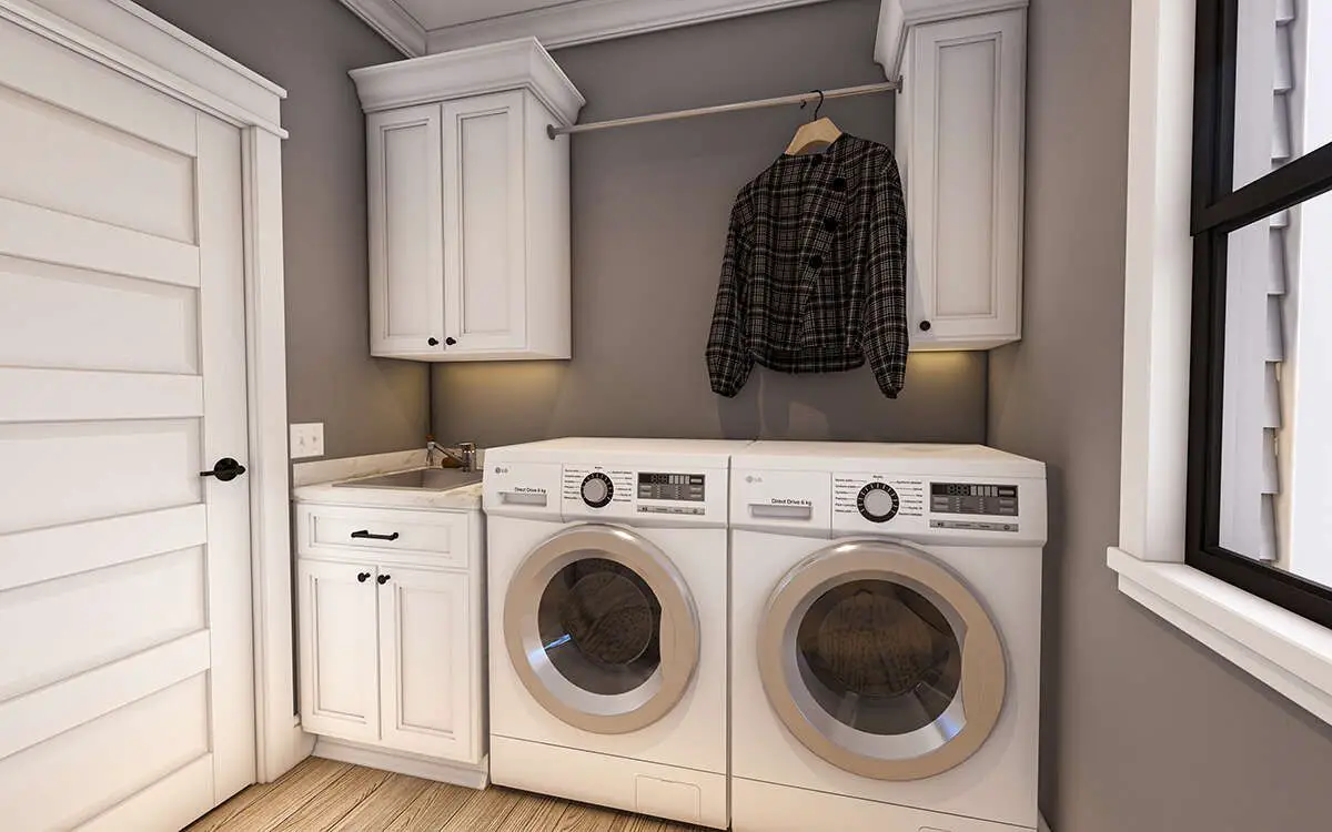 An attached **2- to 3-car garage** provides secure parking, storage, and workshop space. Practical utility spaces such as a mudroom, laundry room, and guest powder room are conveniently located near the garage entrance to support everyday life. 7