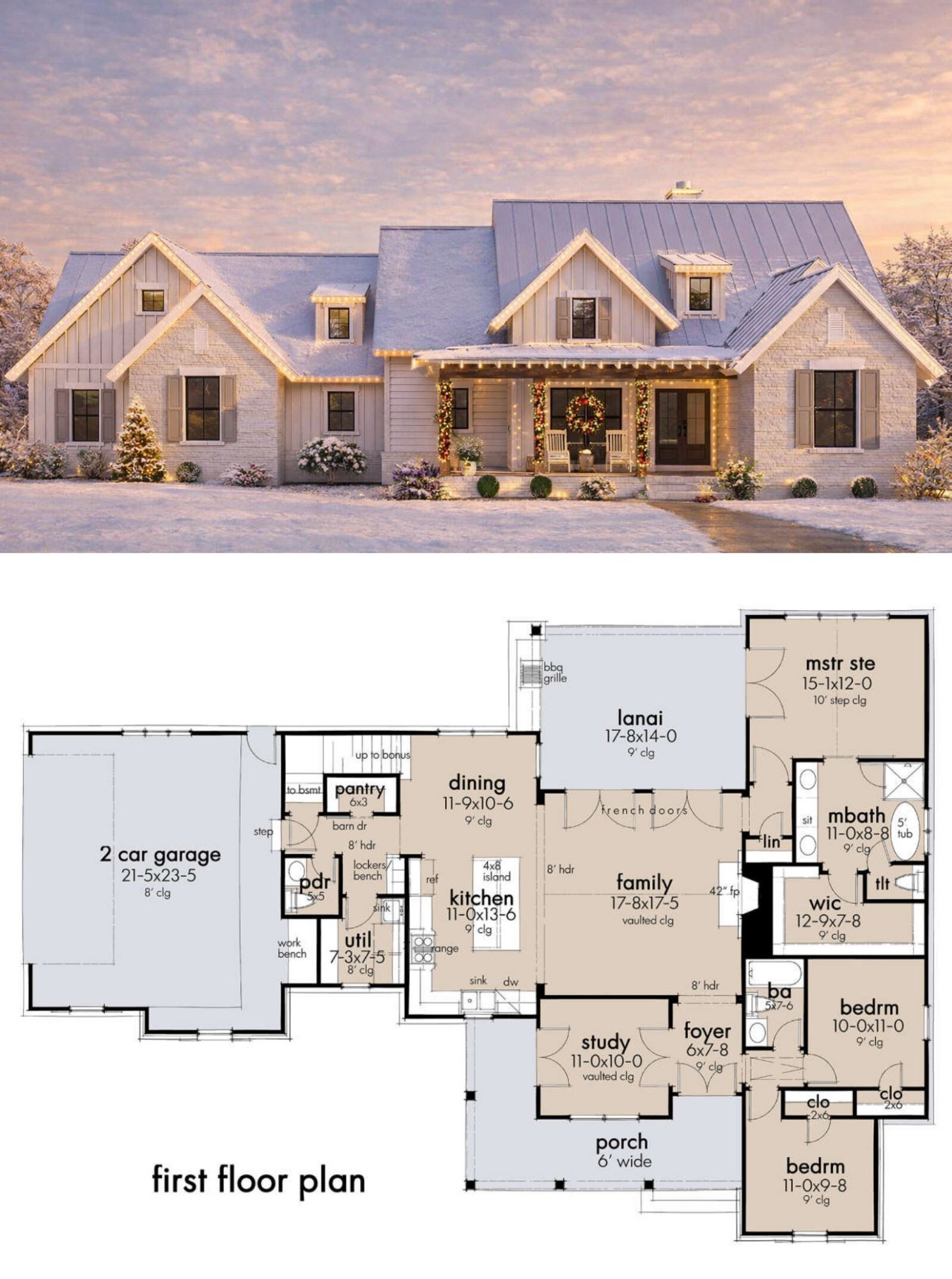 This modern farmhouse plan is designed for comfortable day-to-day living with engaging shared spaces and well-separated private zones. The open main living area invites connection, while the bonus room and flexible study/bedroom provide options to adapt the home to your family’s needs. Outdoor living areas extend usable space and enhance year-round enjoyment. 21