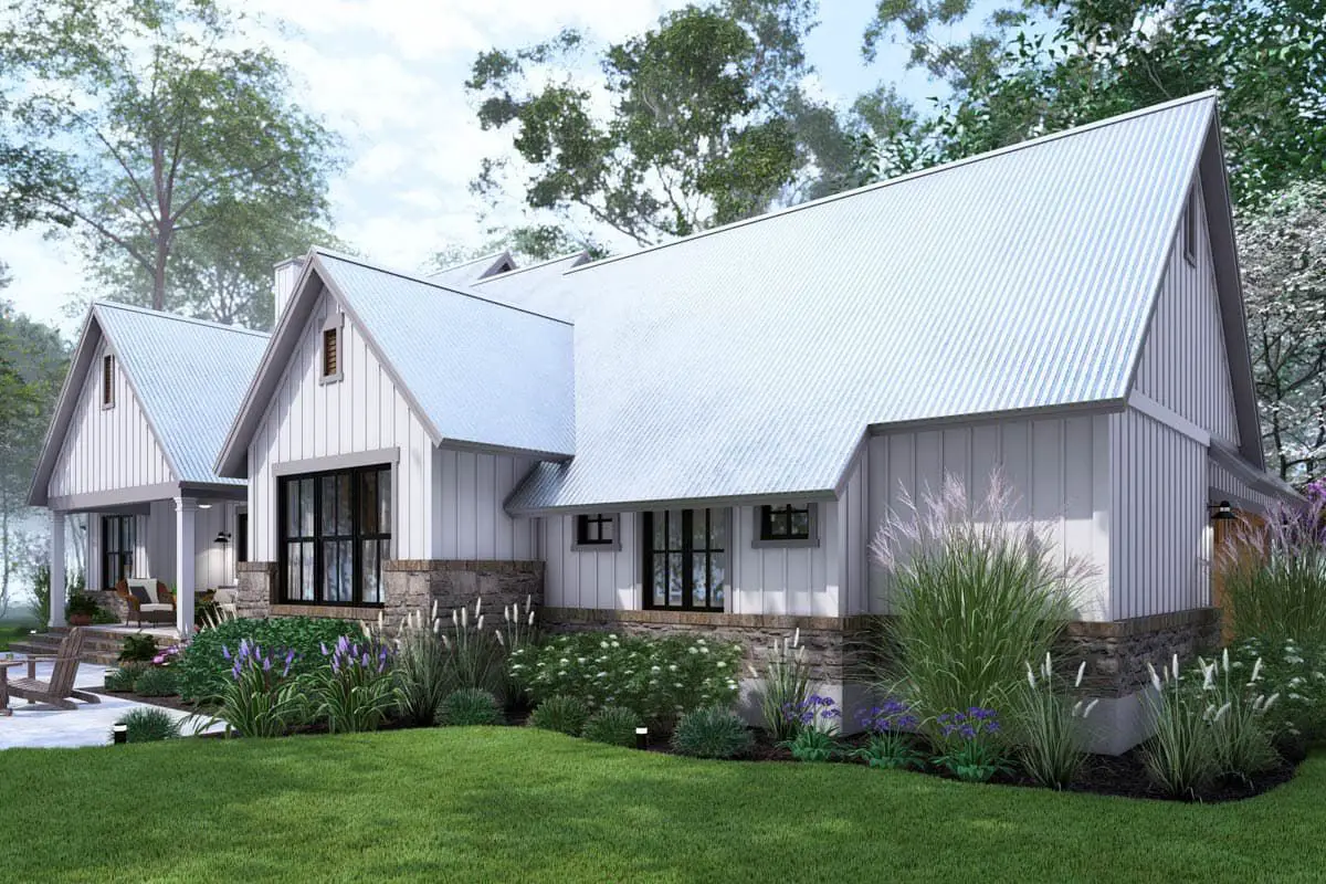 The **4-Bed Modern Farmhouse Plan with Bonus Room Over Garage (Plan #16938WG)** is a stylish and functional home designed for modern family living.