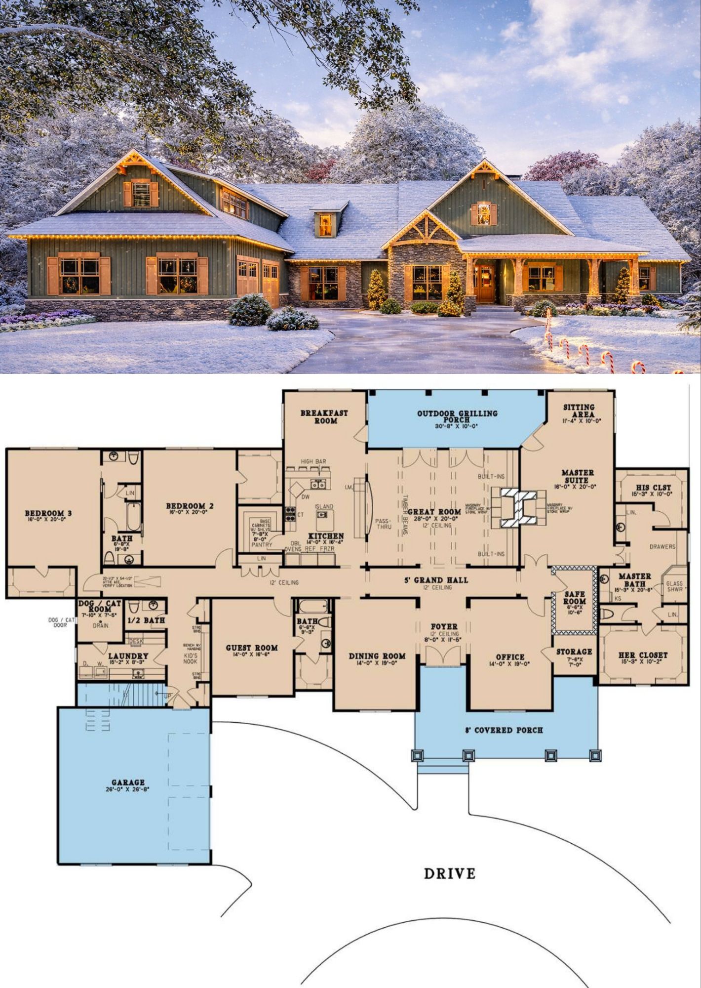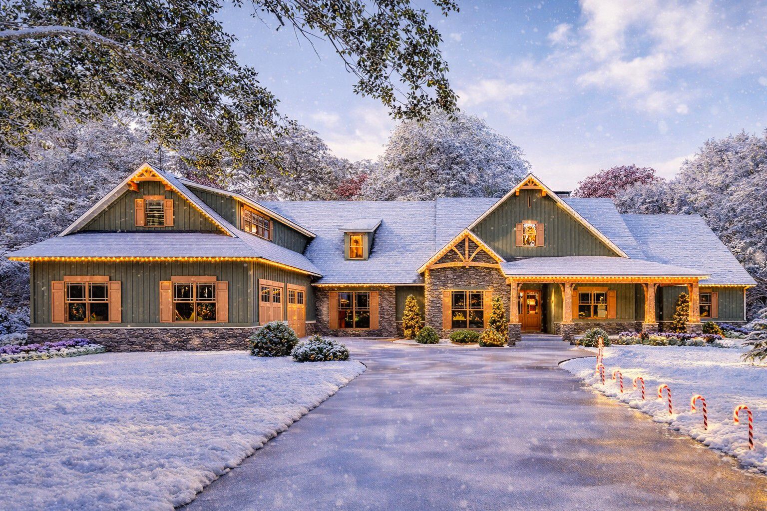 This country-style home features a generous footprint measuring approximately 117′-9″ wide by 81′-10″ deep, delivering strong curb appeal and presence on larger lots. Classic exterior proportions and mixed material finishes emphasize timeless style and welcoming character. 1