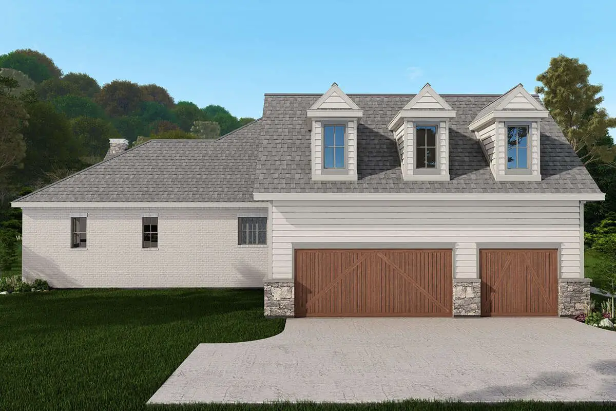 An attached **3-car garage (~1,027 sq ft)** offers ample parking and storage, with interior access supporting easy transitions into the home. Practical zones like a mudroom and laundry space help streamline everyday life. 7