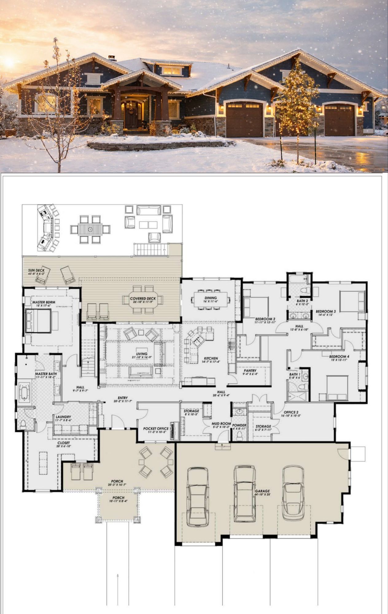 - Bathrooms: 3 full + 1 half.