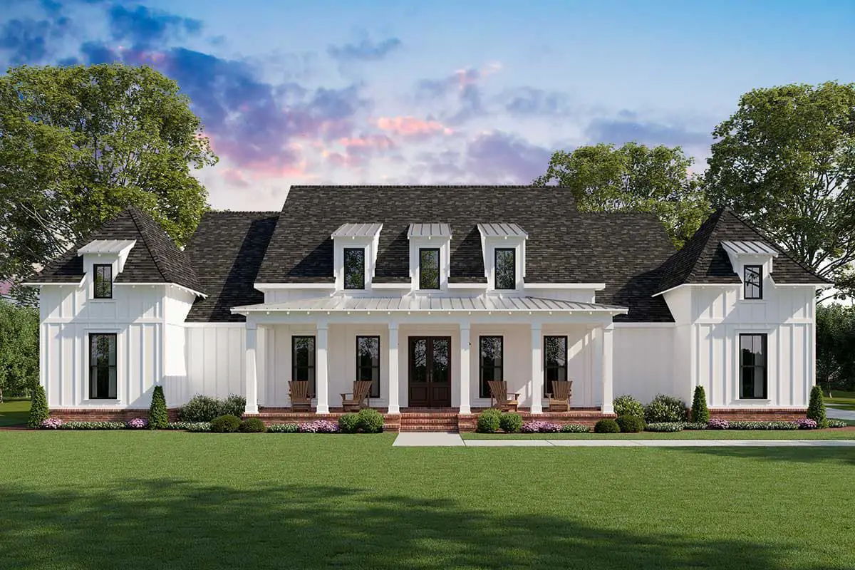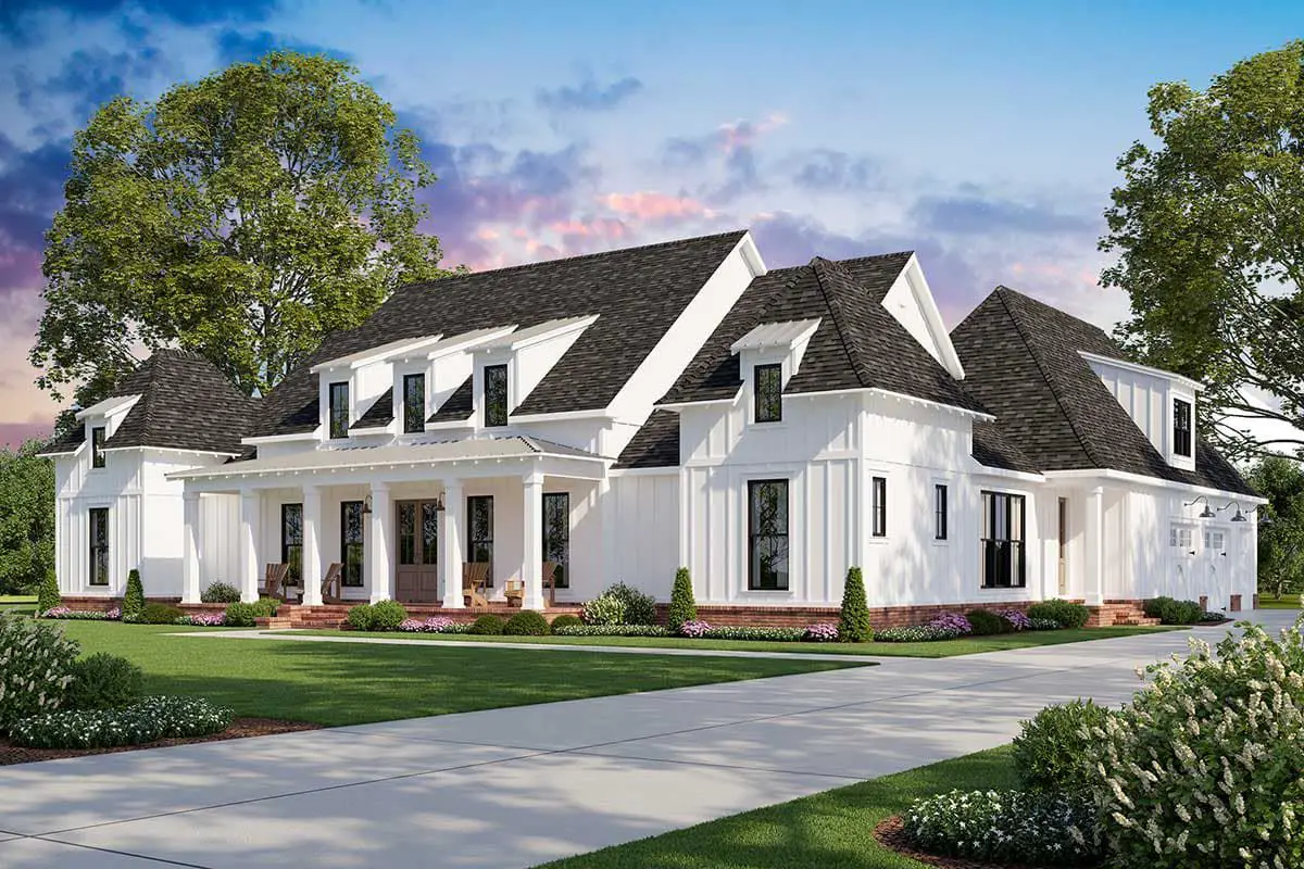 The **Farmhouse Plan with Luxurious Master Suite (Plan #56458SM)** is a beautifully designed modern farmhouse that balances timeless curb appeal with thoughtful, family-friendly spaces.