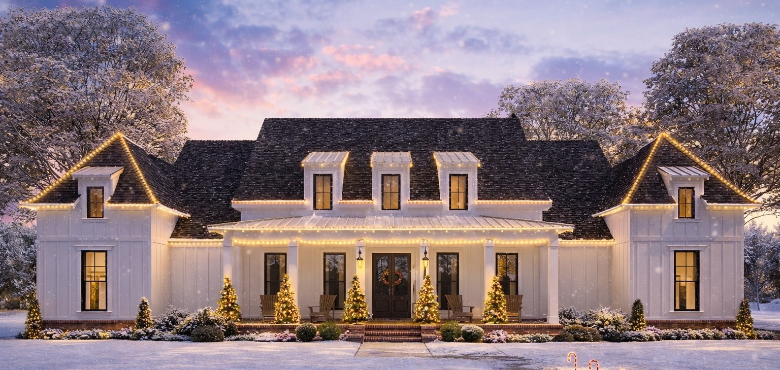 This home features a clean and classic farmhouse exterior that draws the eye with balanced proportions and welcoming porch areas. The thoughtful design enhances curb appeal while setting the stage for relaxed outdoor living.