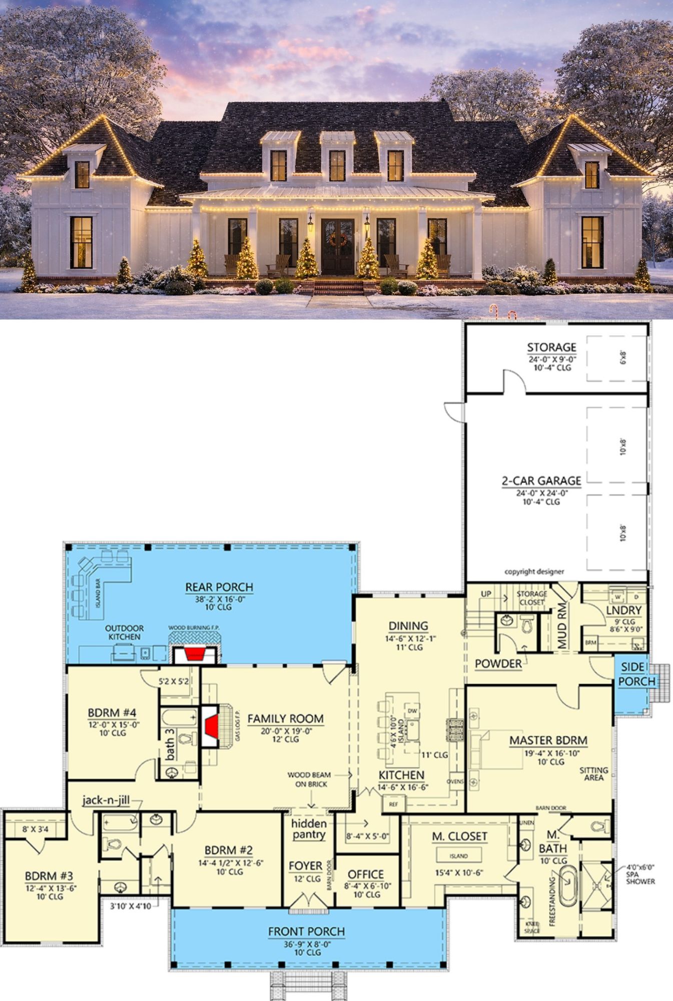 This farmhouse design is ideal for seamless everyday living with its open concept layout and thoughtful placement of private spaces. The master suite and flexible bonus room provide elevated comfort and versatility, while the generous outdoor living areas extend the home’s footprint for relaxation and entertainment. 18