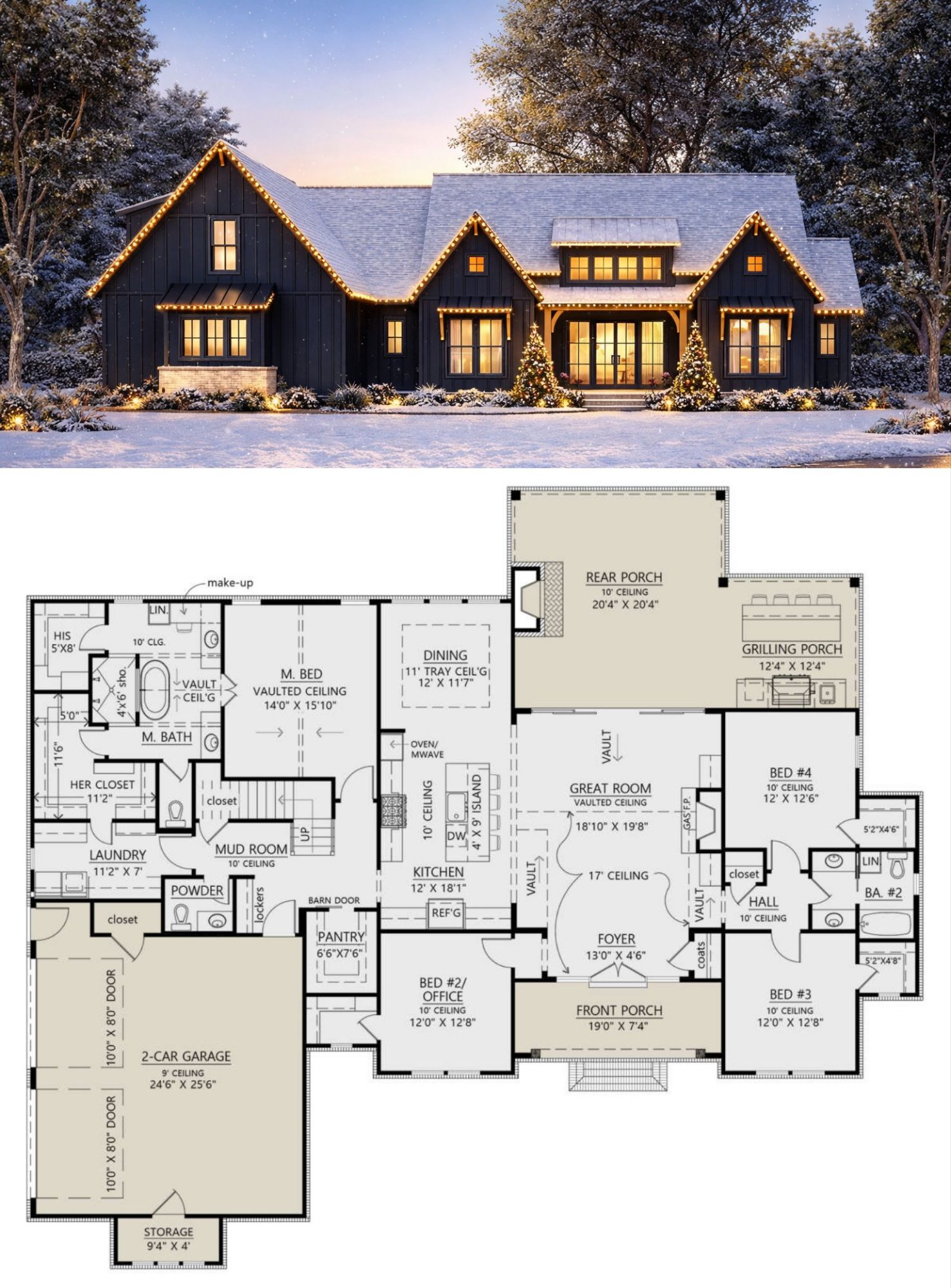 The exterior showcases classic modern farmhouse styling with clean lines, board-and-batten siding, and welcoming covered porch areas that enhance outdoor living.