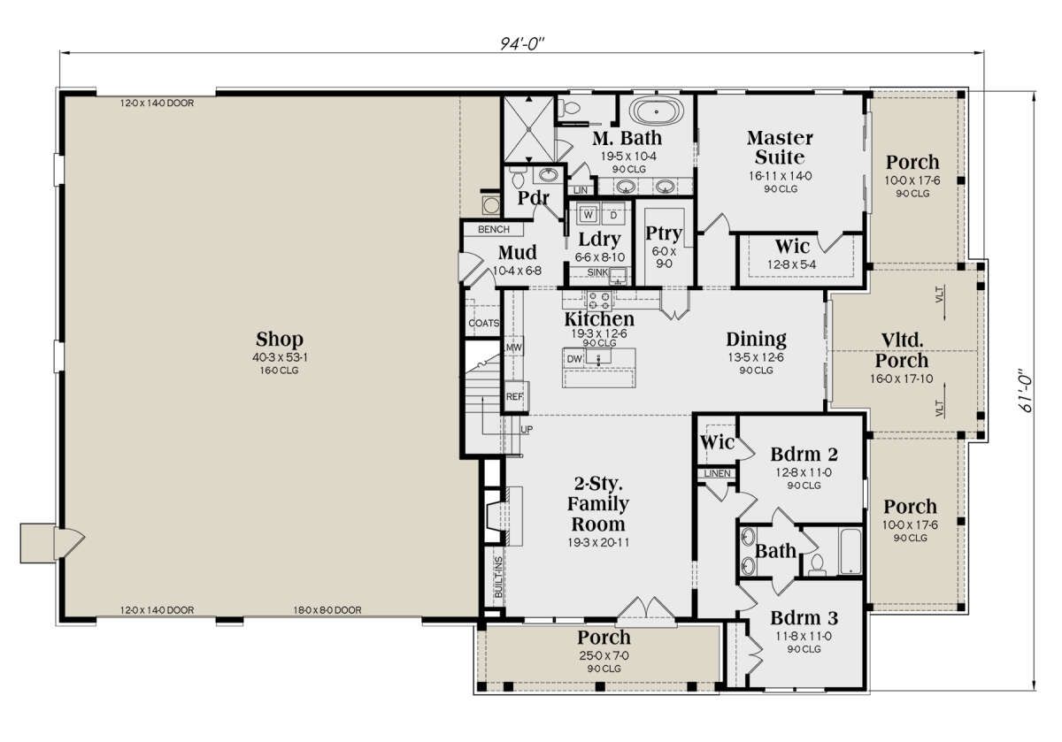 This barndominium plan highlights open, adaptable living spaces that support both relaxed everyday life and social gatherings. The layout promotes a connection between shared spaces while providing quiet bedroom retreats. Its flexible design allows you to use interior spaces for family rooms, offices, guest bedrooms, or hobby zones with ease.