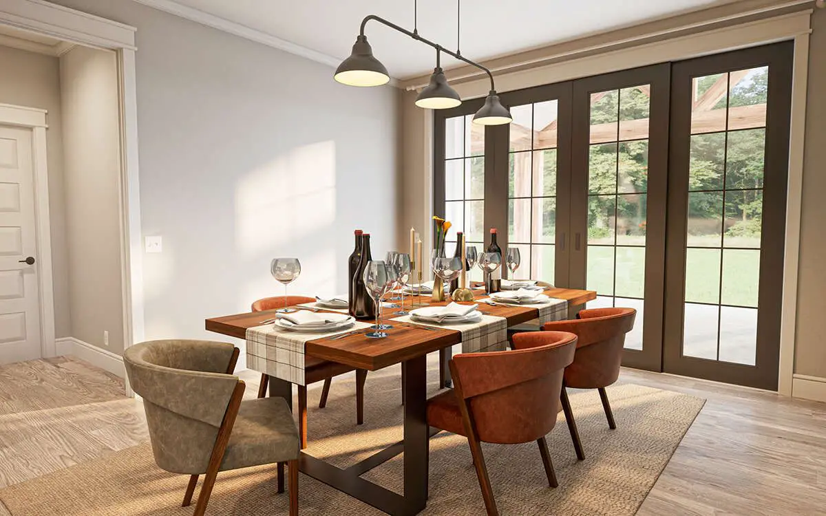 A covered **front porch** adds welcoming character and extends usable outdoor space. This design blends beautifully in rural, country, and acreage settings while still fitting comfortably on larger suburban lots.