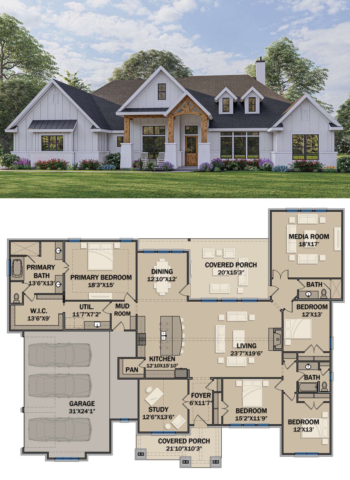 Deep eaves, exposed rafter tails, and mixed siding textures give this home a handcrafted look that’s both charming and timeless. The footprint spans about **86′-5″ wide by 64′-8″ deep**, providing a substantial street presence. 1