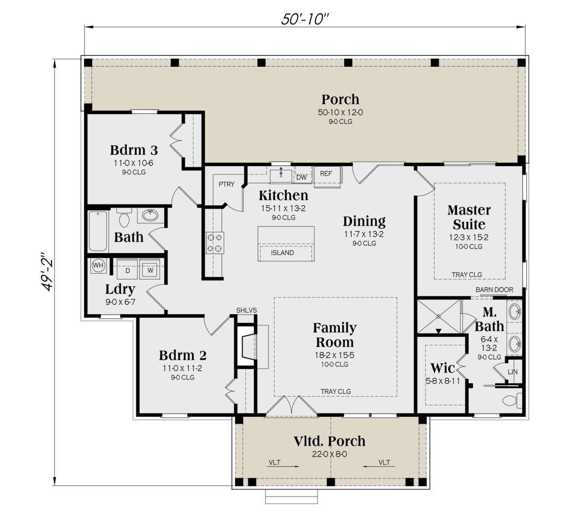- Main Ceiling Height: ~9-10 ft
