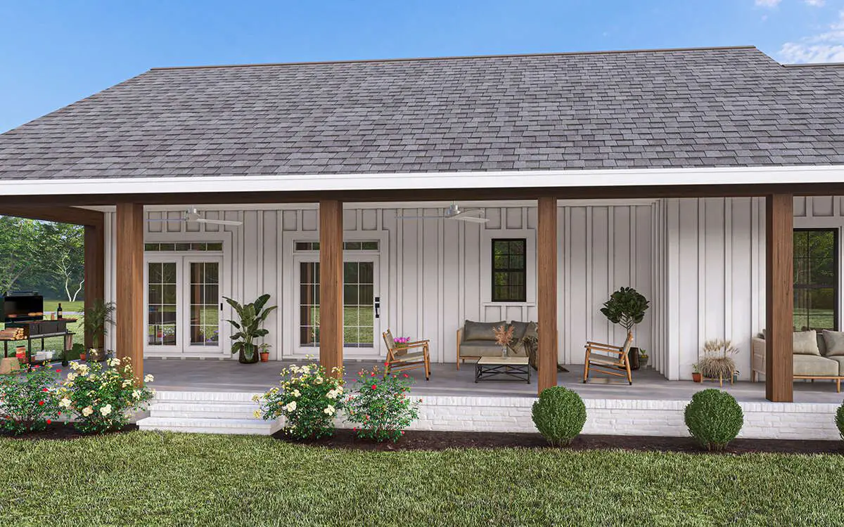 This modern farmhouse plan is designed to support everyday living with a focus on comfort, efficiency, and style. The open interior layout encourages connection and ease of movement, while the bedroom placement ensures private retreats for rest and relaxation. Its thoughtful use of space makes it ideal for families, couples, or anyone seeking a balanced layout that’s both inviting and practical.