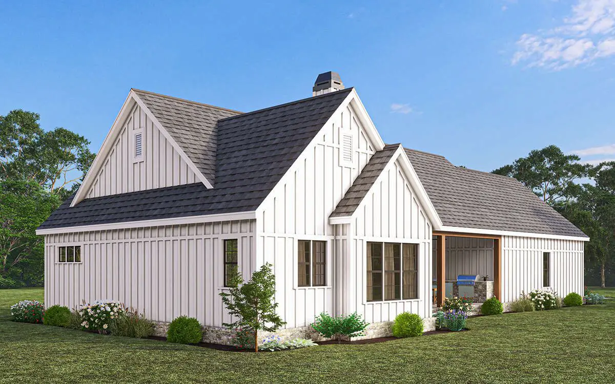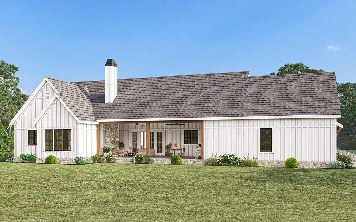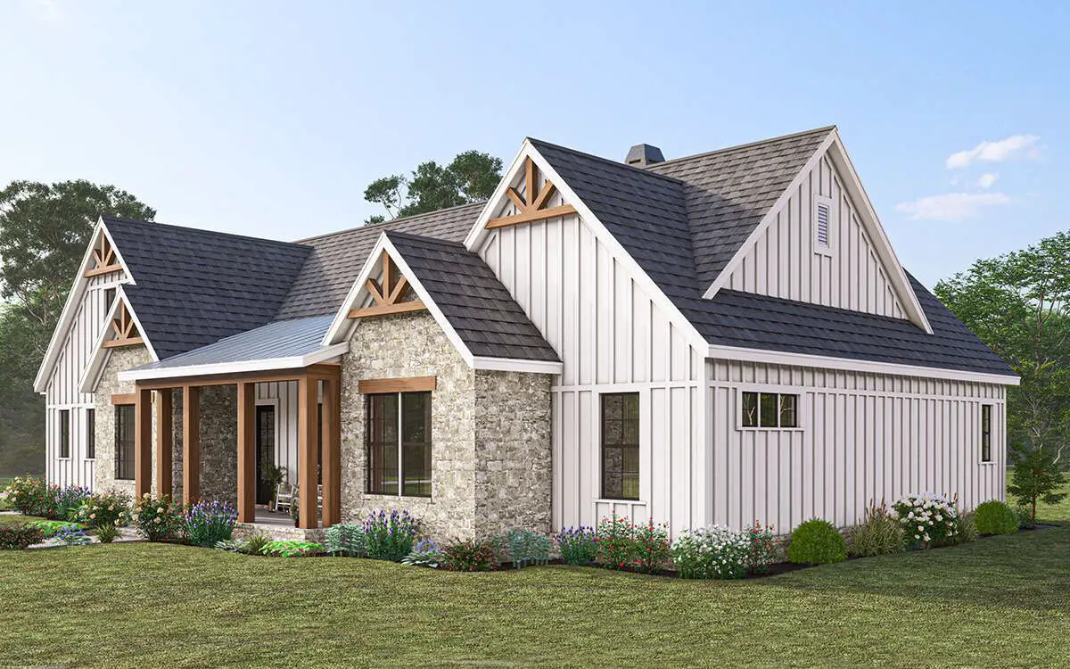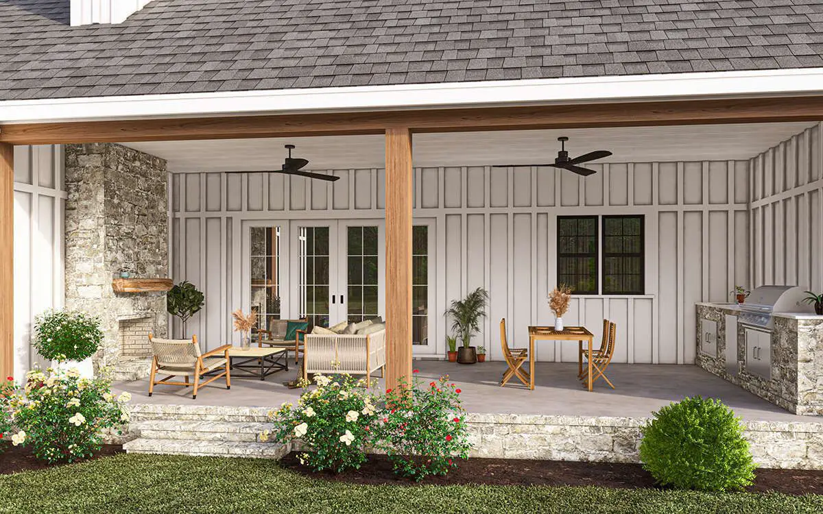 This modern farmhouse plan is created to support both relaxed daily living and social gatherings. The open interior layout encourages connection between family members and guests, while the bedroom layout ensures privacy when needed. The inclusion of flexible spaces provides adaptability whether you’re working from home, hosting overnight visitors, or simply enjoying everyday life.