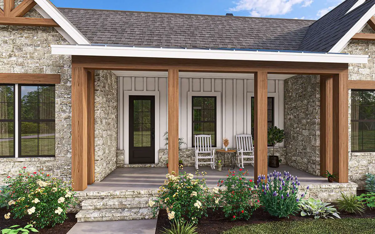 Covered outdoor porch areas extend your living space beyond the interior walls, providing the perfect spots for morning coffee, casual relaxation, or outdoor entertaining. These spaces help connect the indoors with the surrounding landscape.
