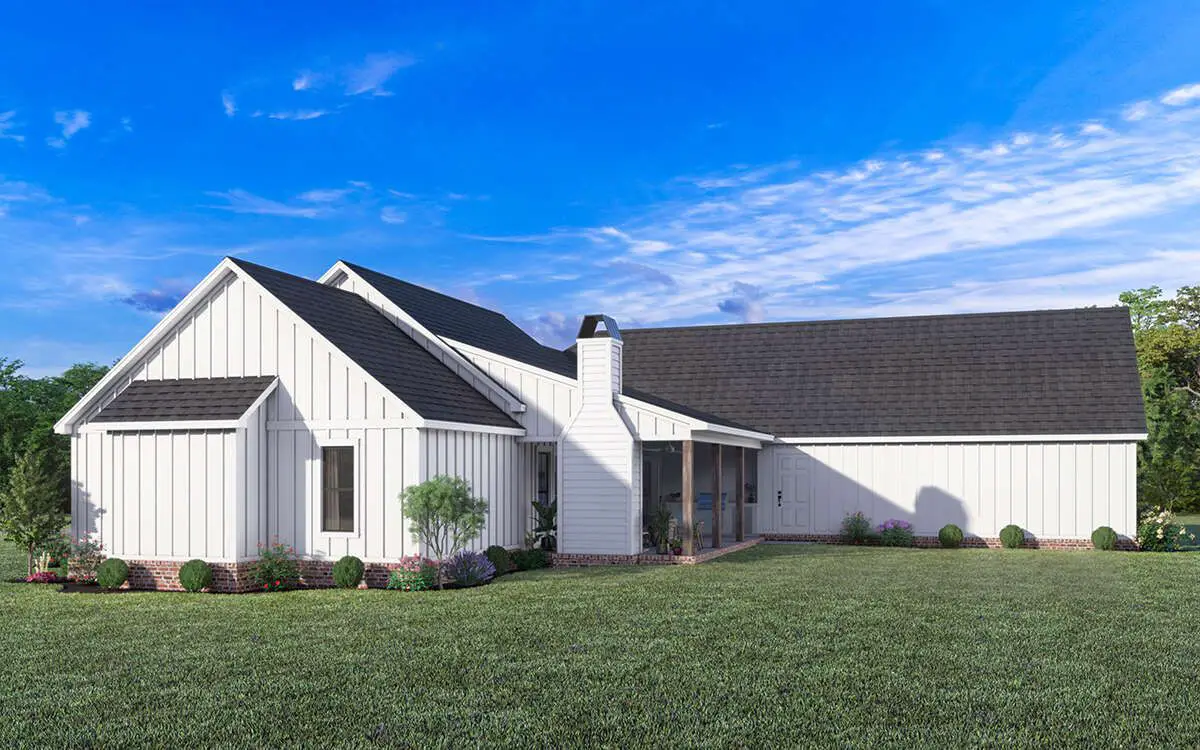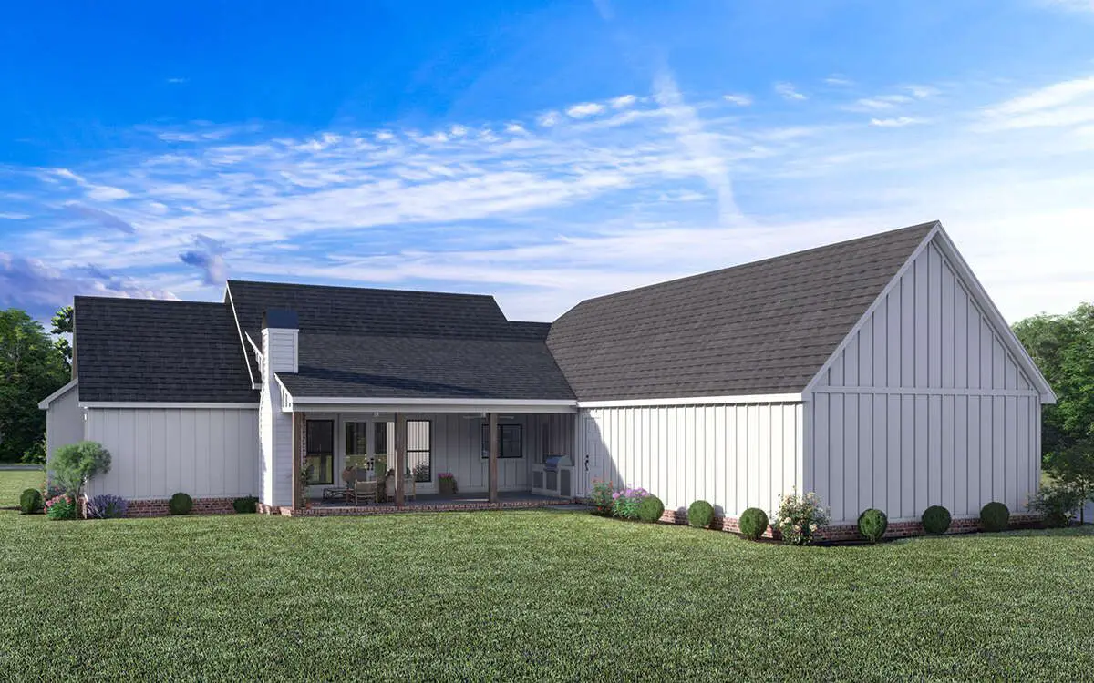 This modern farmhouse plan is designed to support comfortable everyday living. The open shared spaces foster connection, while bedrooms and private areas provide peace and rest.
