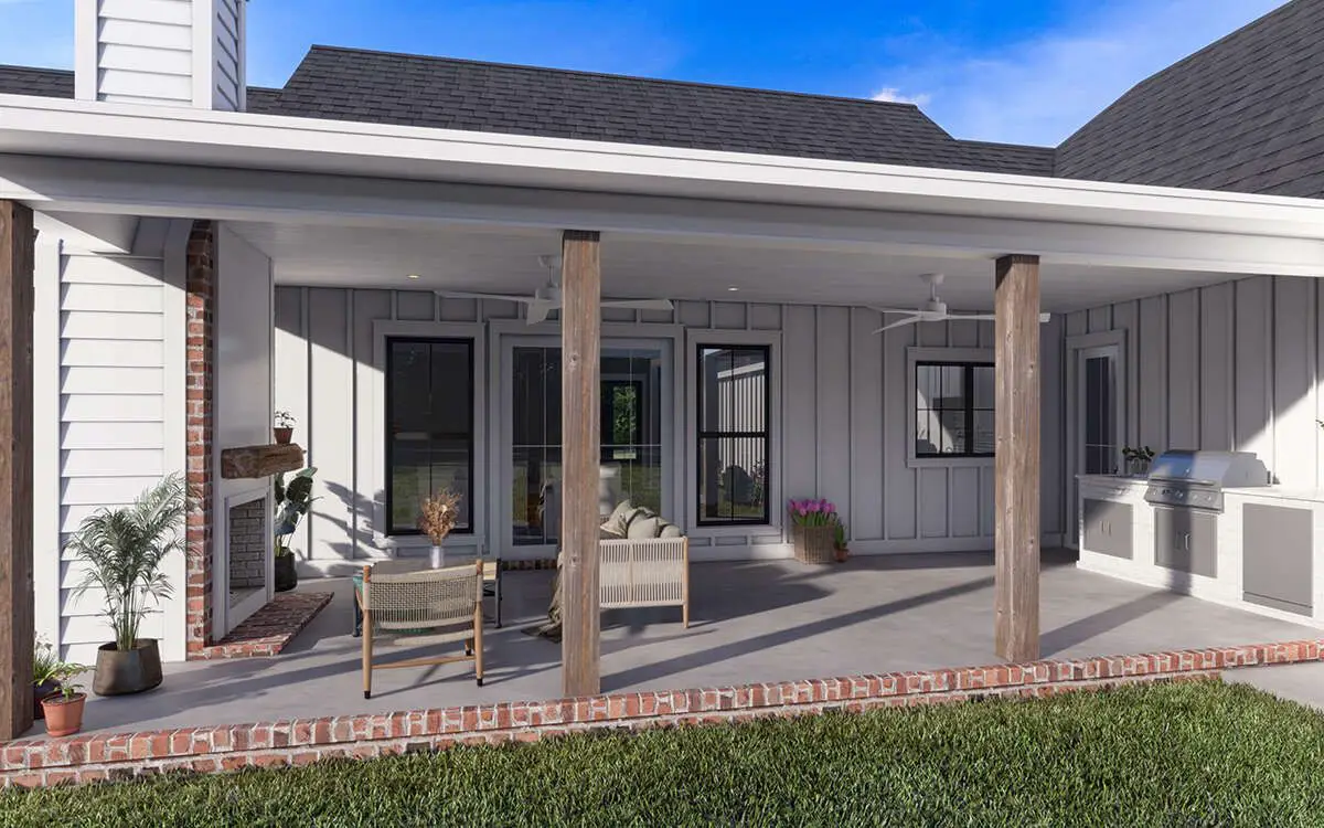 Generous covered porch areas enhance outdoor living space and provide great spots for morning coffee, casual outdoor dining, or evening relaxation with family and friends.