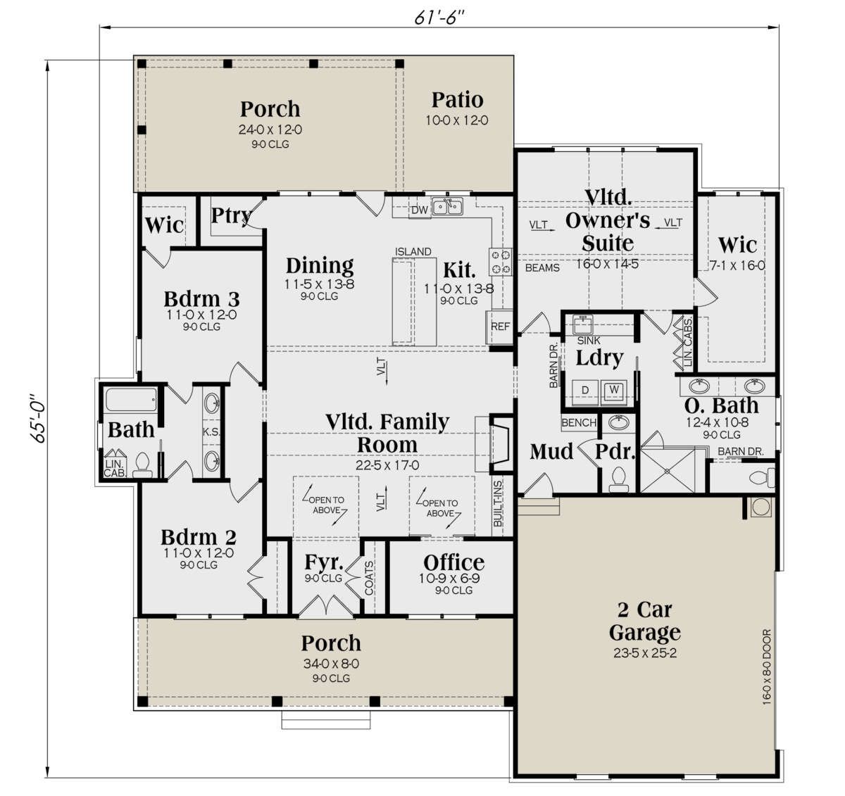 - Overall dimensions: 61′ 6″ wide x 65′ 0″ deep