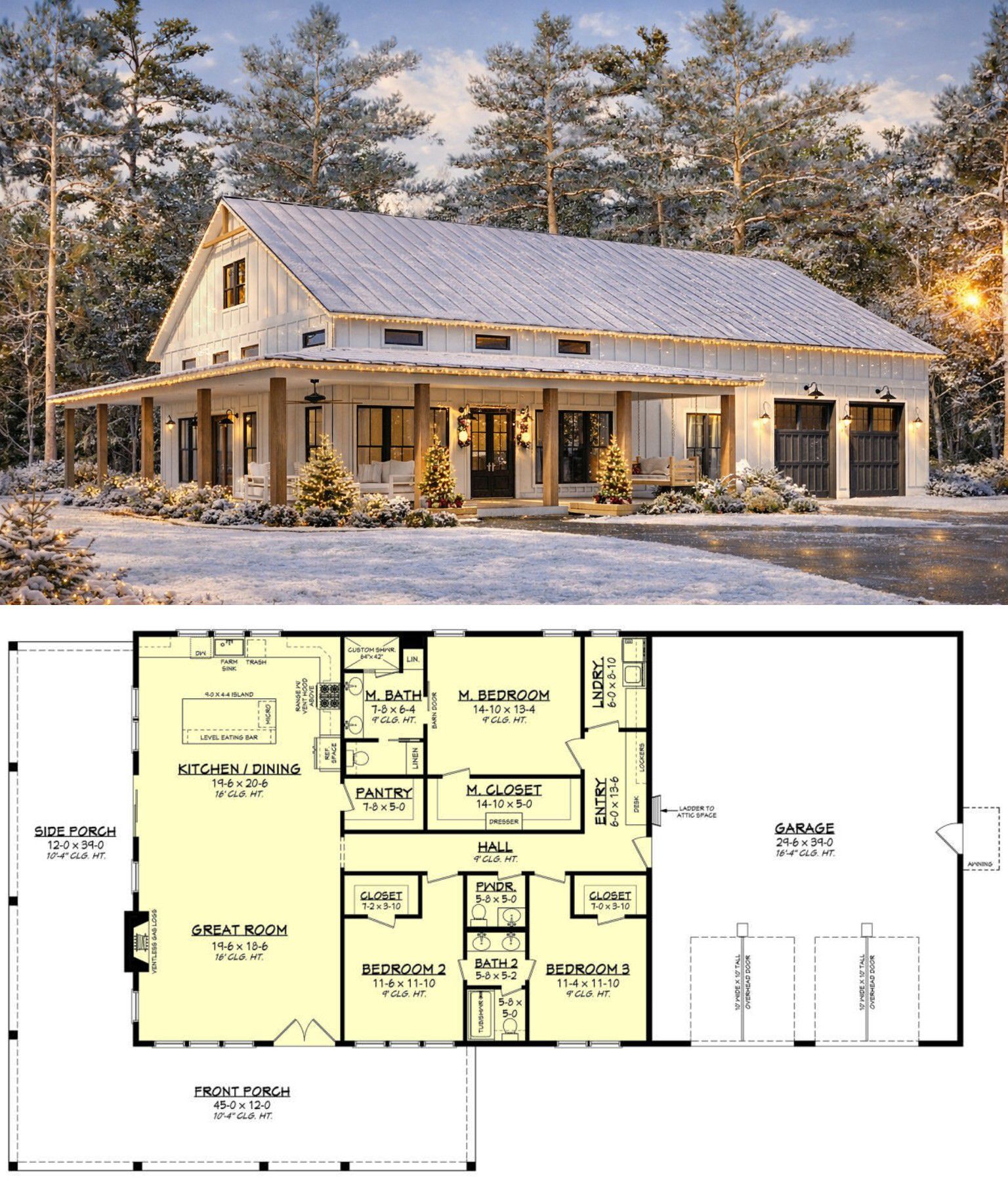 This **barndominium house plan** presents a spacious and functional design that blends rustic barn style with modern living comforts.