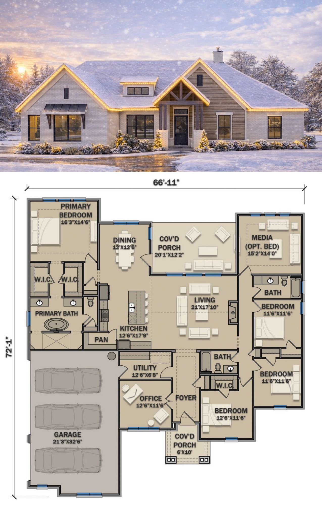 - Roof Pitch: Craftsman‐style gables