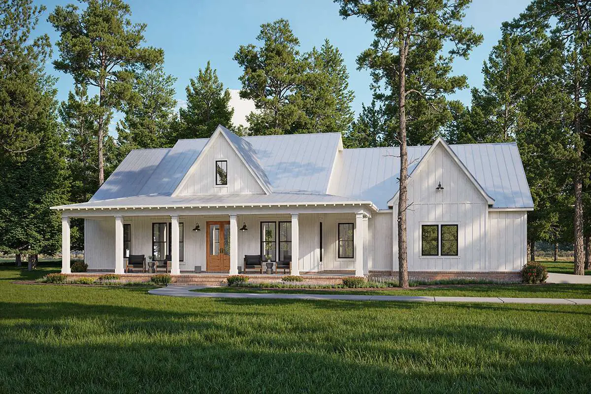 This **modern farmhouse plan** blends classic farmhouse charm with open-concept living and practical spaces for everyday life.