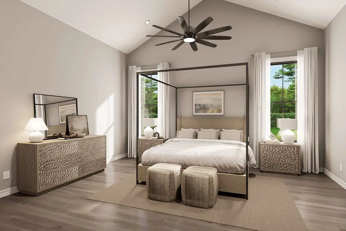 This plan includes **3 well-appointed bedrooms** arranged to balance privacy and convenience. The **primary suite** serves as a peaceful retreat with a private full bathroom and generous closet space.