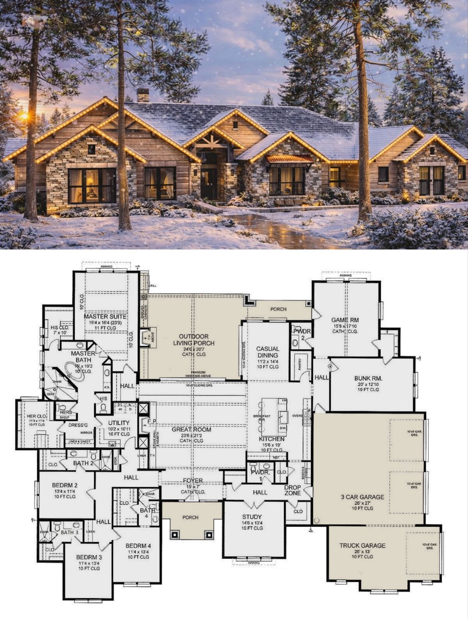 This Craftsman home plan is designed for families who want both shared and private spaces. The large open living areas foster connection and interaction, while the bedroom layout provides restful personal retreats. With plentiful bathrooms, generous storage zones, and expansive outdoor spaces, this plan adapts well to family living, hosting guests, and multi-generational needs.