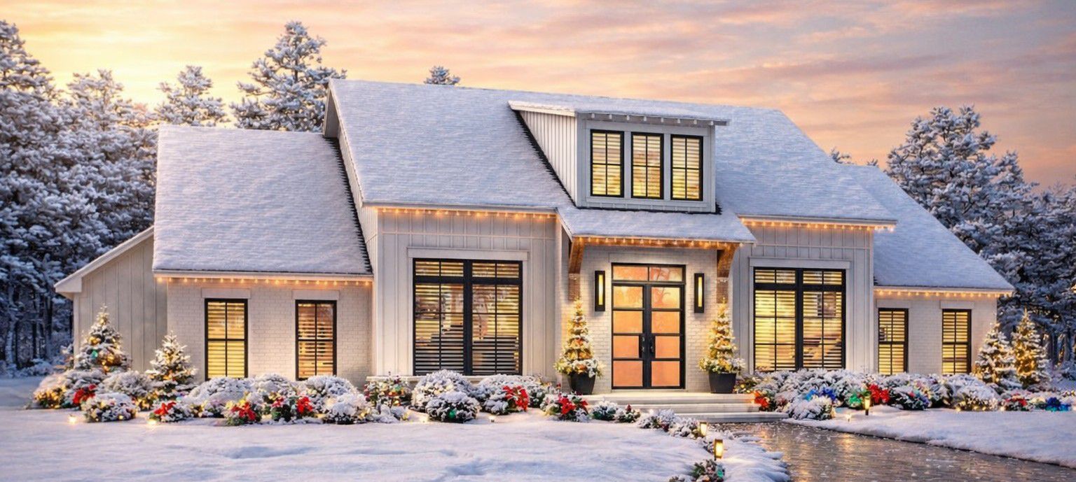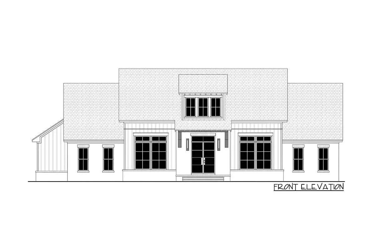 The exterior reads clean and confident: modern farmhouse charm with a slightly more refined, “grown-up” vibe. The proportions are nicely balanced, and the footprint feels substantial without looking bulky. At approximately 76′ 0″ wide by 85′ 4″ deep, it’s sized to feel impressive while still fitting comfortably on many suburban or semi-rural lots.