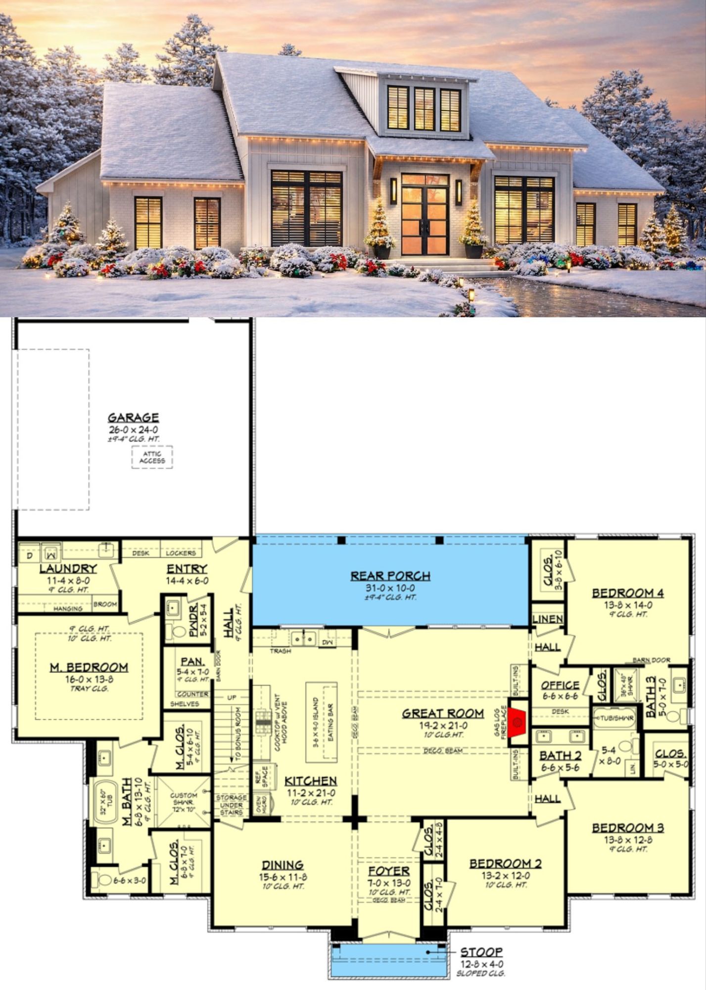 This design blends beauty with everyday practicality. You get open, connected living spaces for family time and entertaining, private bedroom separation for peace and quiet, and the kind of “support spaces” (mudroom, pantry, office, workshop) that make life easier every single day. And the optional bonus suite upstairs is the cherry on top—future flexibility without forcing you to overbuild right now.